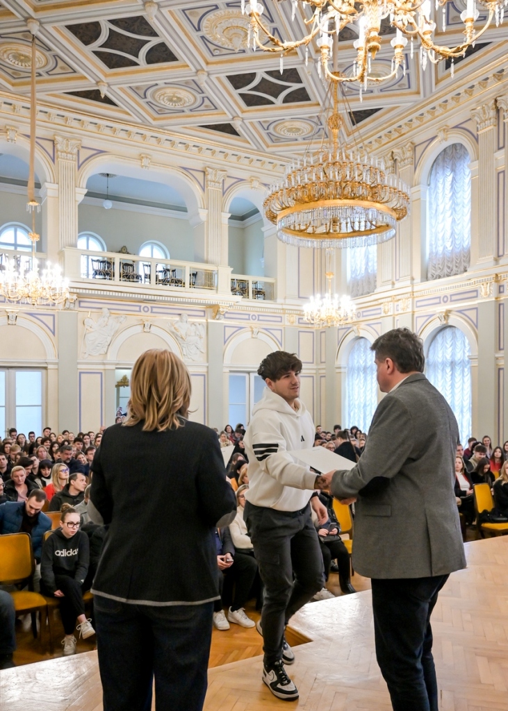 Varaždinskim učenicima i studentima u subotu su u Velikoj koncertnoj dvorani HNK u Varaždinu uručeni ugovori o stipendiranju. Ove godine ukupno je dodijeljena 621 stipendija, 88 za učenike i 533 za studente, a ugovore su im uručili zamjenik gradonačelnika i saborski zastupnik Miroslav Marović i pročelnica Upravnog odjela za društvene djelatnosti Danijela Vusić. U školskoj/akademskoj godini 2025./2026. Grad Varaždin je u proračunu za stipendije osigurao 550.000,00 eura, a u odnosu na prošlu godinu iznos svih stipendija je povećan za 10 %.