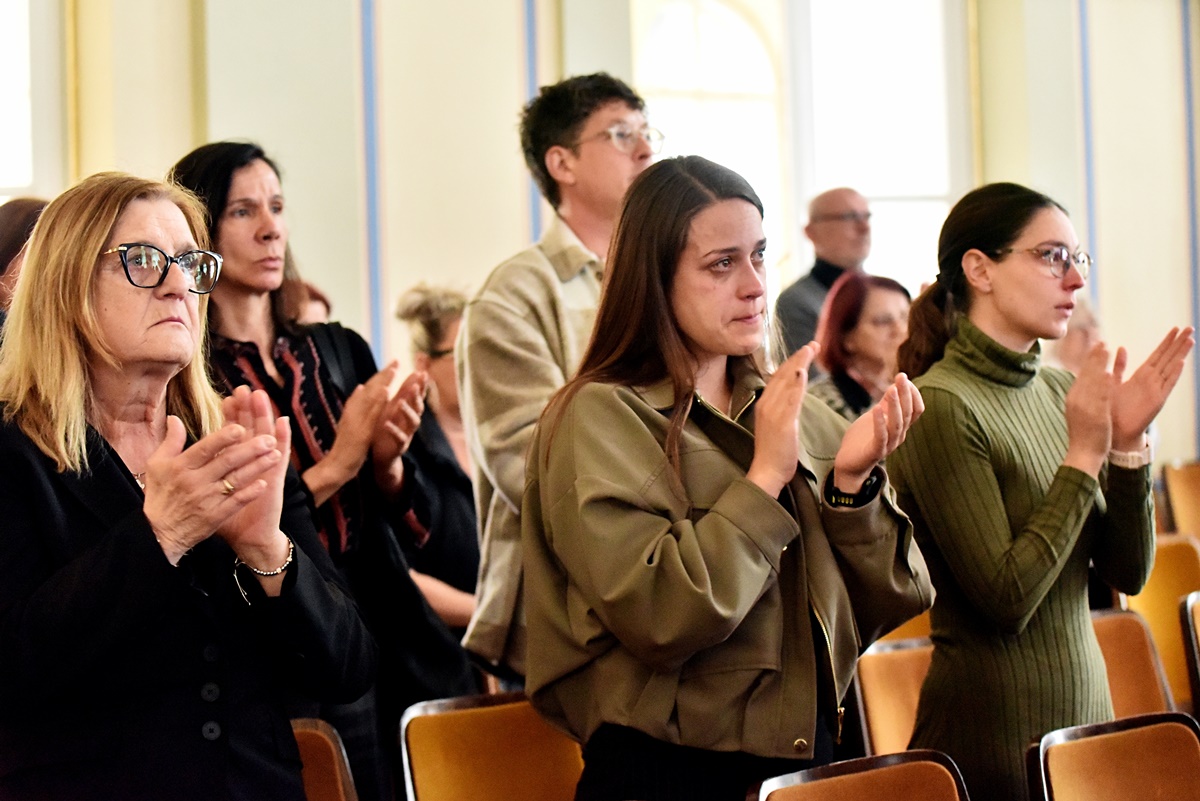 U Velikoj koncertnoj dvorani varaždinskog kazališta u petak, 10. travnja, kolegice i kolege iz ansambla Hrvatskog narodnog kazališta u Varaždinu, njeni prijatelji i članovi obitelji, oprostili su se na komemoraciji od svoje kolegice, dramske umjetnice Marije Krpan.