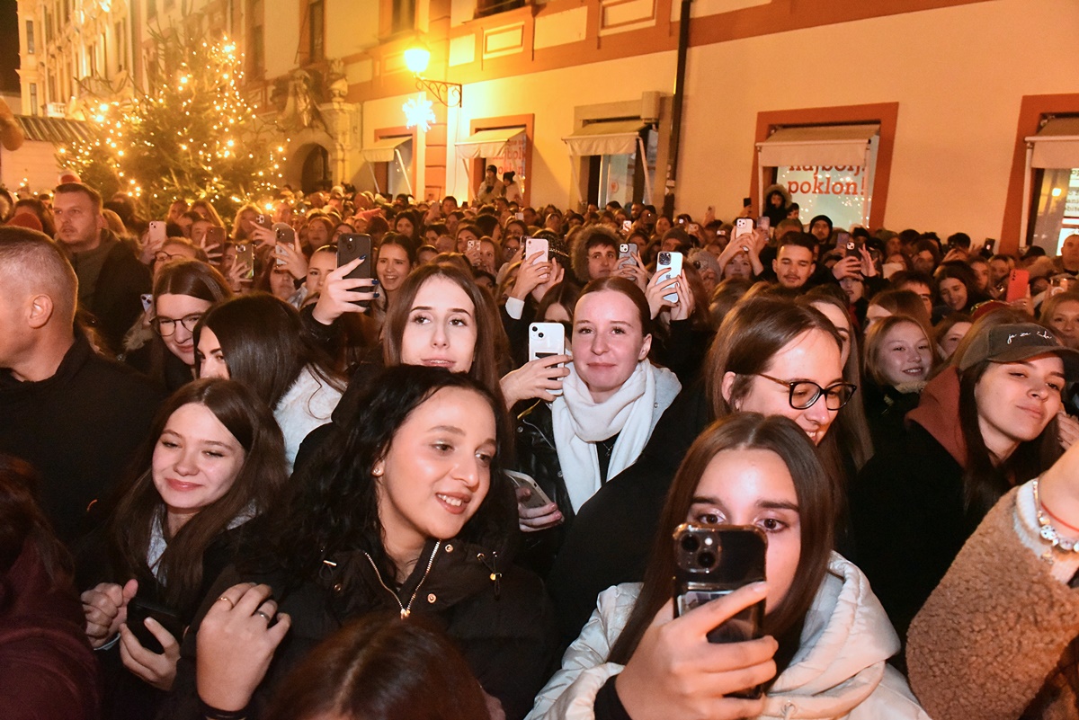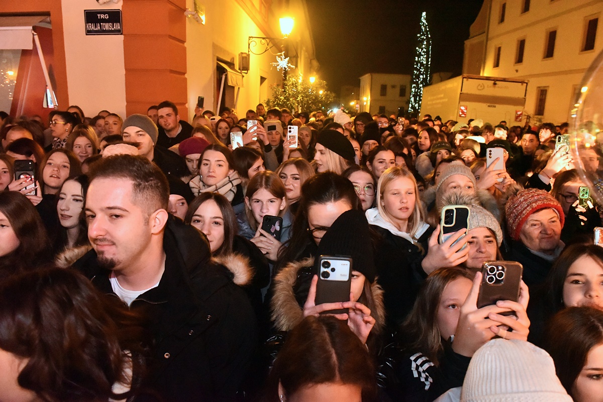 To se još nije dogodilo: pjevač, koji je tek prije tjedan dana najavio svoju prvu pjesmu, uspio je večeras privući publiku koja je gotovo u cijelosti ispunila središnji varaždinski trg uređen u adventskom ozračju. Naravno, riječ je o Jakovu Jozinoviću, koji je već ranije nastuppio u Varaždinu.