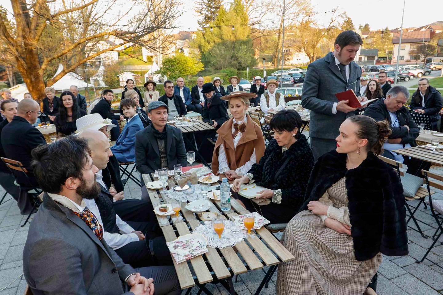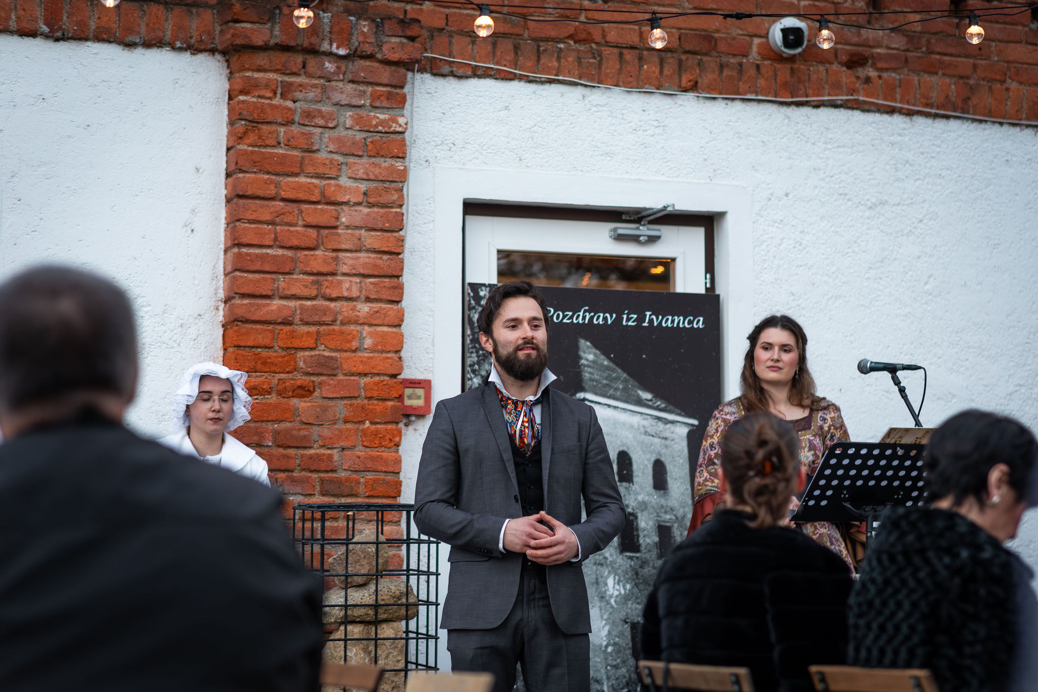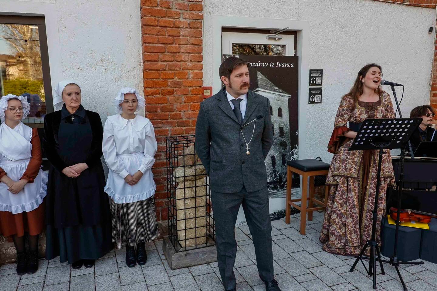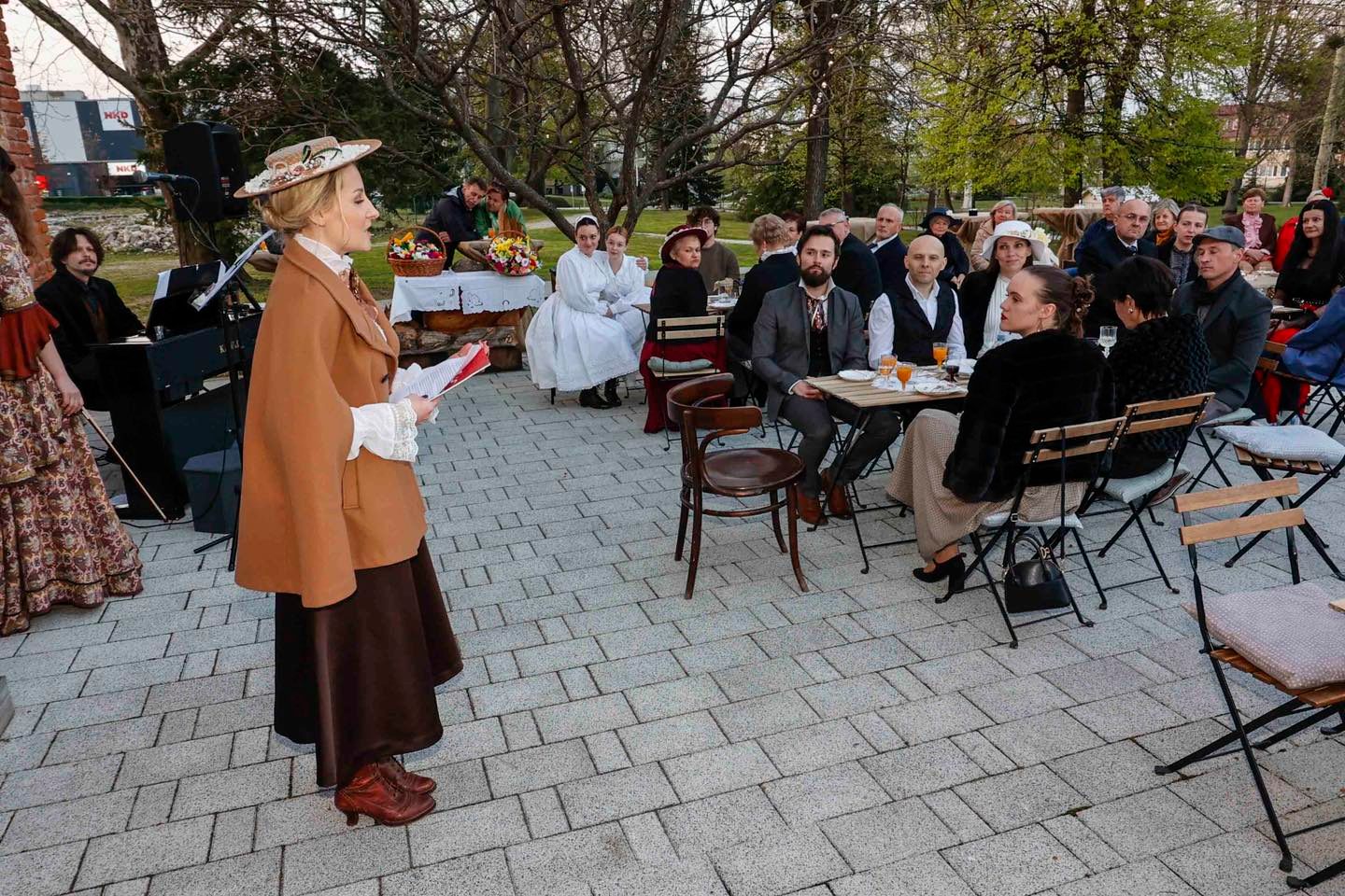 Okupljanje publike, koja se odazvala pozivu organizatora te se na prijmu pojavila u svečanim retro odjevnim kombinacijama ili s modnim detaljima s početka prošlog stoljeća, pratio je glazbeni preludij Martine Sabljak (violina, pjevanje), koja je ujedno utjelovila Božidarovu suprugu Korneliju Kukuljević Sakcinski, i Patrika Zamode (pianino).