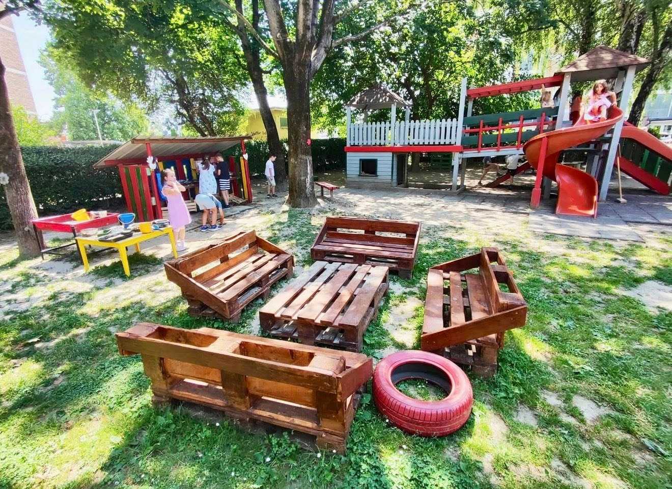 Dvorište vrtića Koprivnička prepuno je kreativnih rješenja i pravi mali raj za mališane, a to je sve rezultat truda i vremena svih odgojitelja ovog objekta, domara, djece i njihovih roditelja jer su svi zajedno uz donacije pomogli da dvorište vrtića postane mjesto igre, istraživanja i dječjeg smijeha.