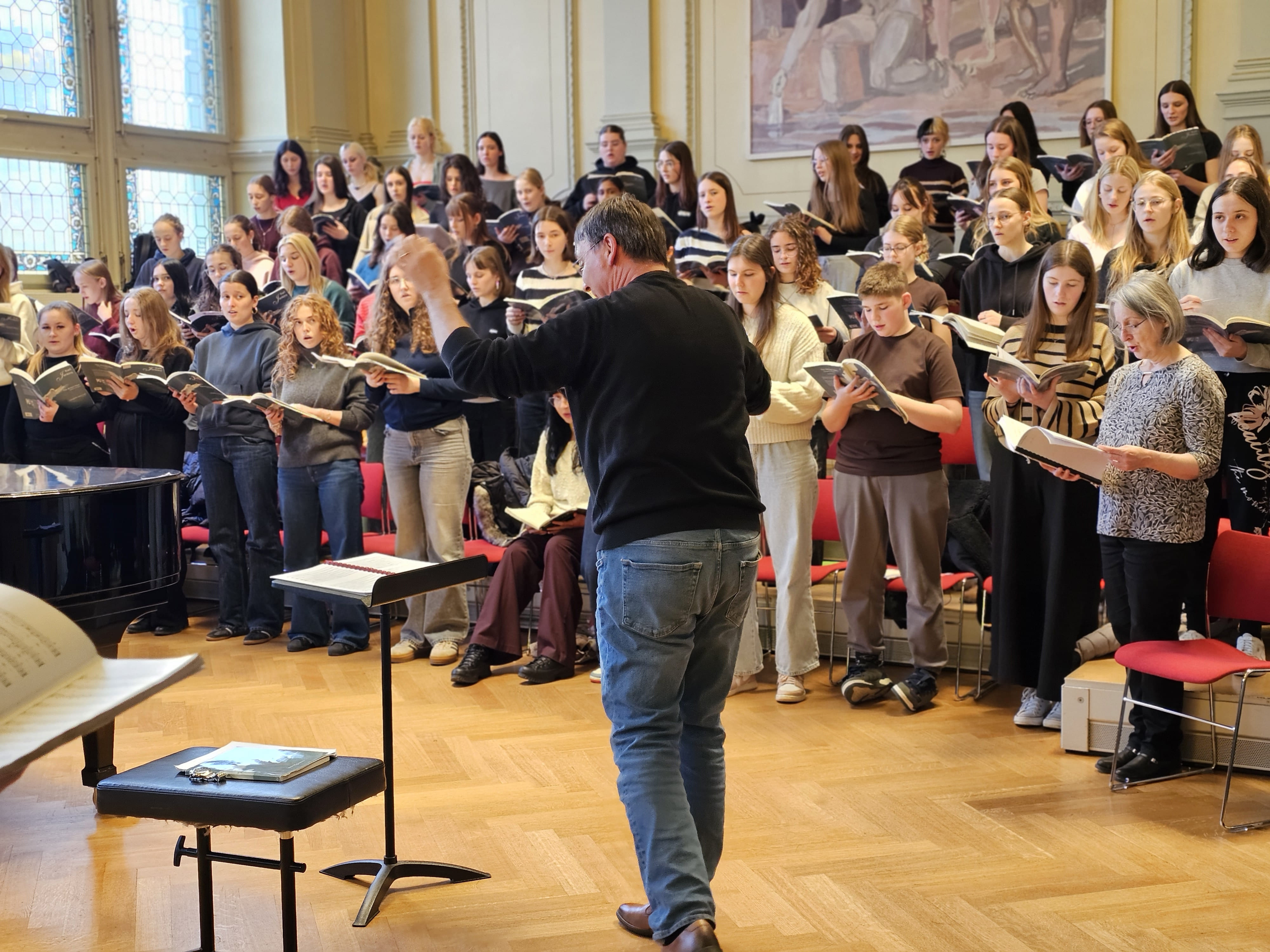Učenici Glazbene škole u Varaždinu, koji ovih dana borave u Švicarskoj u sklopu međunarodne suradnje s KantonsschuleSchaffhausen, nastavljaju intenzivne i zahtjevne pripreme za izvedbu monumentalnog djela TheArmed Man: A Mass for Peace skladatelja Karla Jenkinsa. Koncert će se održati 28. ožujka 2026. godine u crkvi St. Johann u Schaffhausenu, čime će se zaokružiti ovaj značajan međunarodni umjetnički pothvat.