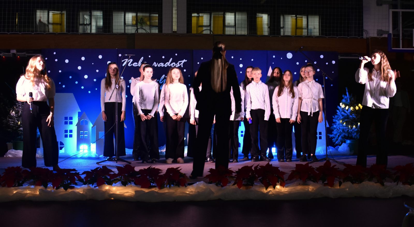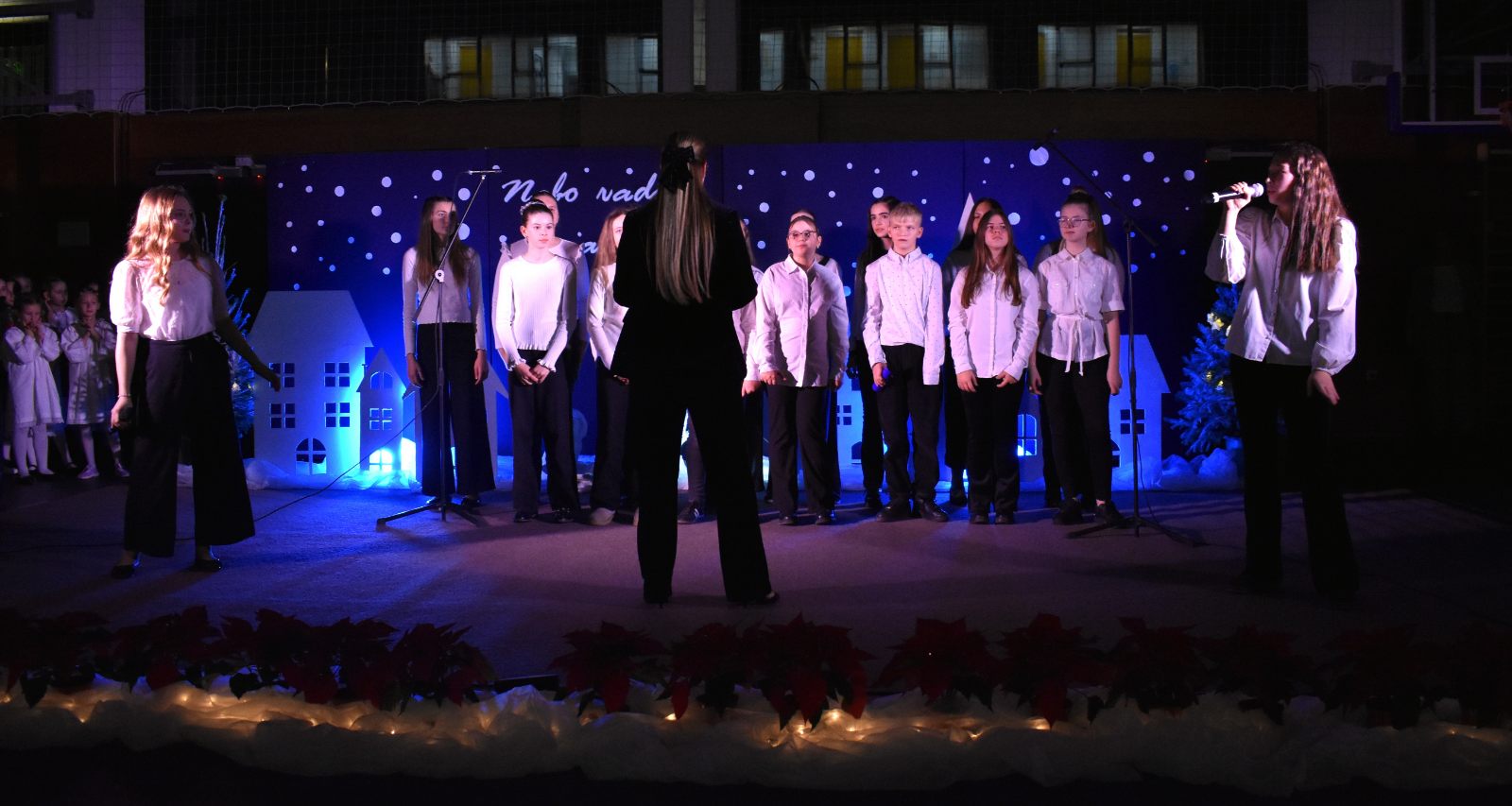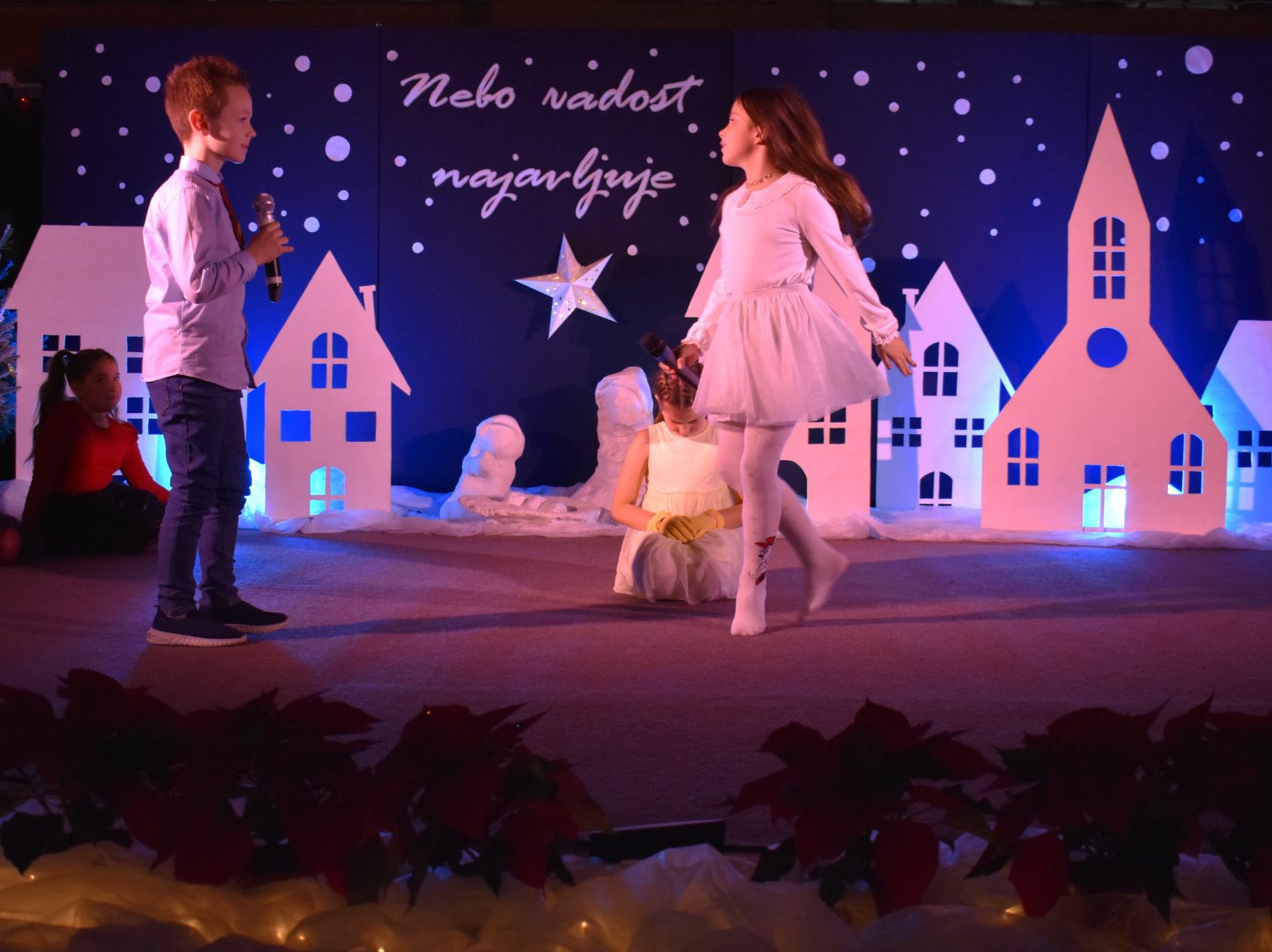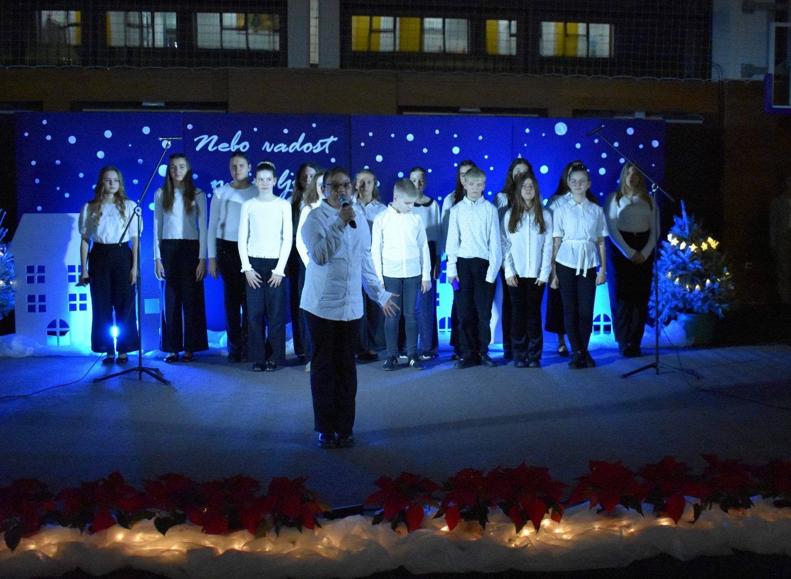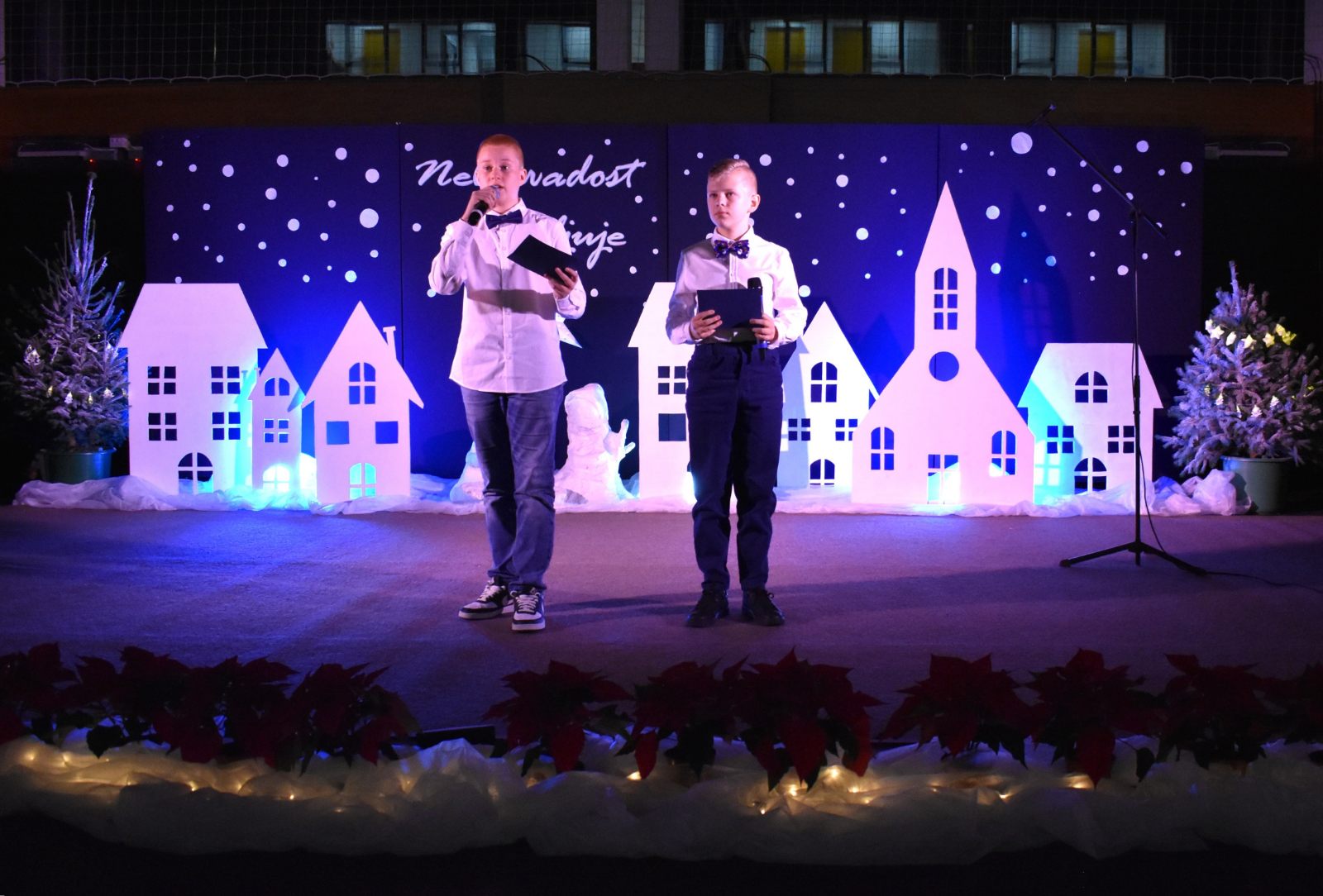 Program priredbe vodili su Teo Sodar (6.b) i Rafael Barulek (6.a), koji su toplim riječima pozdravili sve prisutne i poveli publiku božićnom pričom ispunjenom sjećanjima i porukama nade.