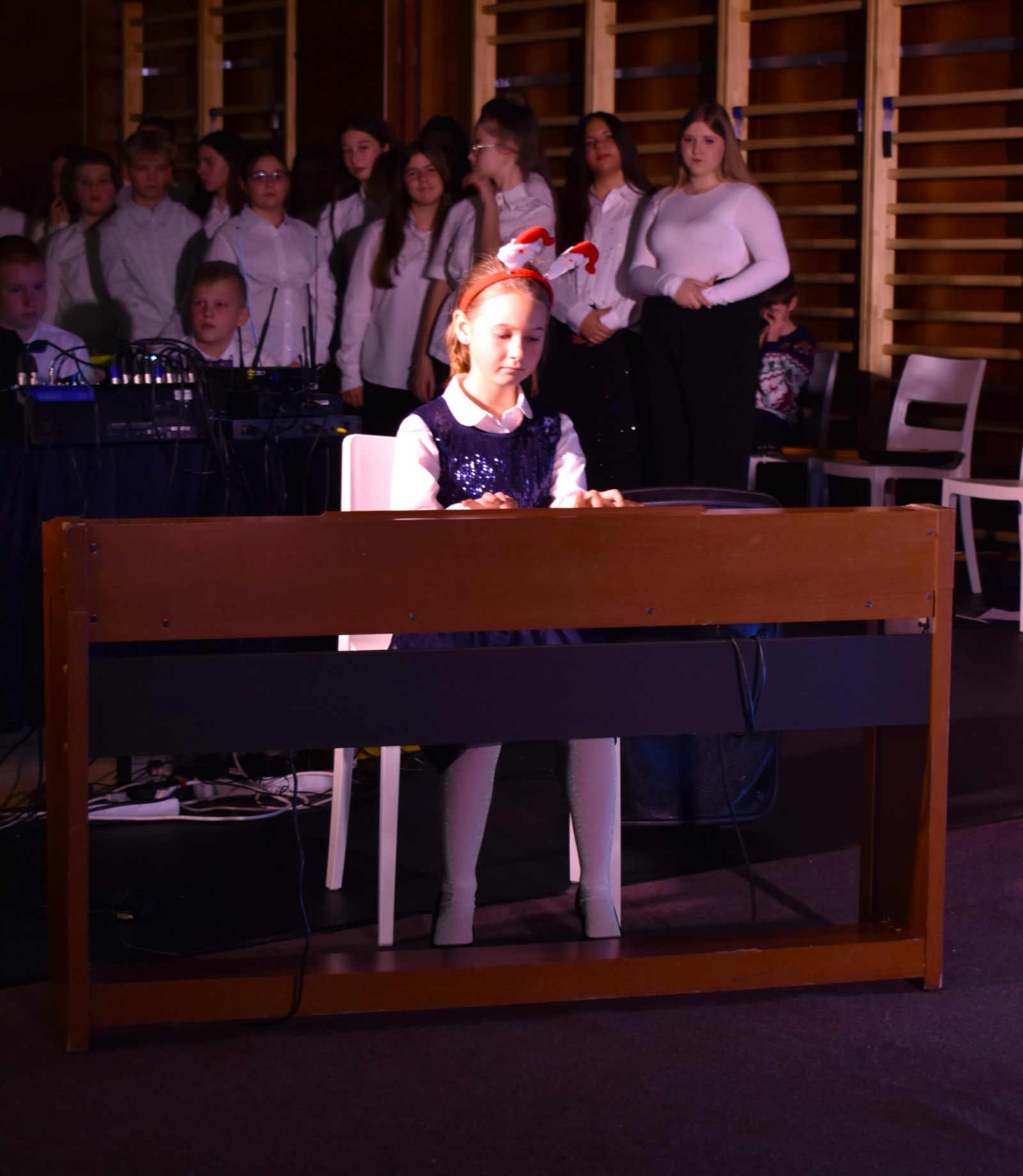 Posebnu toplinu večeri donijeli su oni najmlađi. Dramska je družina publiku raznježila recitalom "Isusu za rođendan", a s njima su podijelili i svoju "Božićnu želju". Mir je zavladao pozornicom kad su članovi Dramske skupine "Blümchen", uz svjetlost svijeća, božićnu radost prenosili na njemačkome jeziku. A miris toploga čaja i kolačića te radost prosinačke večeri dočarao je mali Pjevački zbor izvedbom pjesme "Cimet i čaj".
