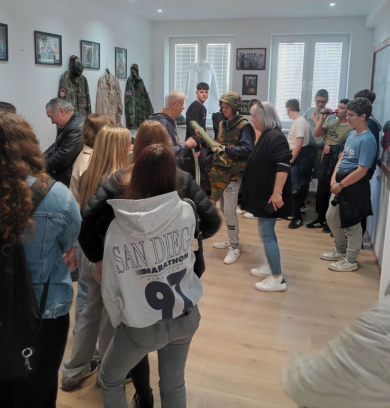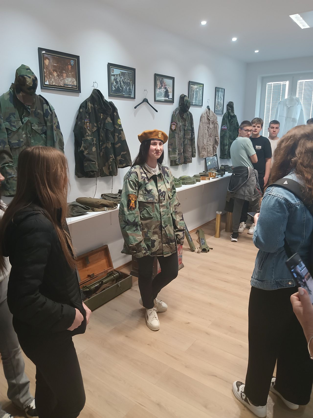 Uz pojedine fotografije i oznake domovinske i agresorske vojske, najveće zanimanje pokazali su za opremu i naoružanje, koje se nalaze i posebnoj prostoriji Centra. Neki su se ohrabrili pa su isprobali zaštitne kacige, jakne, košulje, 'pancirke', a u ruke stavili i ispucane 'zolje'. Voditelj edukacijskog programa Centra, Pjer Jagetić, malo im je približio način ispaljivanja topničkih granata, a kako se bliži izložba u njihovom kraju, u Dvoru Trakošćan, približio im svoju priču o „Djevojčici s lutkom iz prašine“ iz Pakraca.