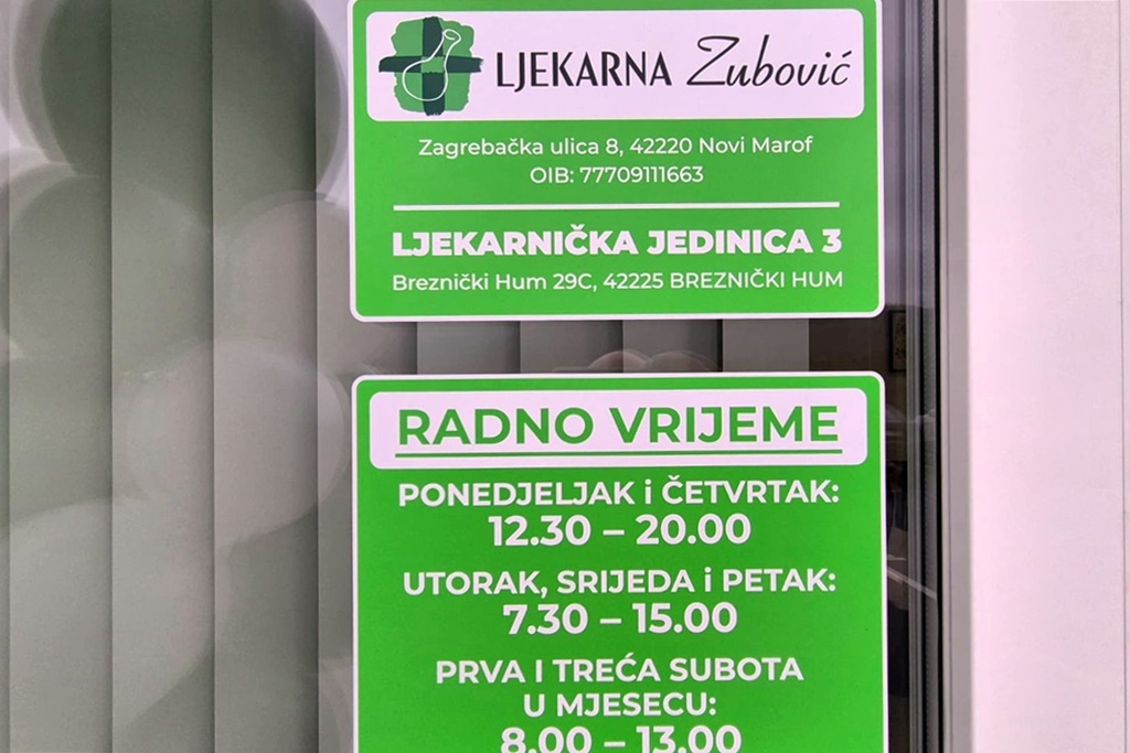 Riječ je o trećoj ljekarničkoj jedinici Zdravstvene ustanove Zubović, koja već više od tri desetljeća uspješno djeluje u području zdravstvene skrbi. U sklopu nove ljekarne pacijentima su dostupni lijekovi na recept i bez recepta, medicinska pomagala, dodaci prehrani te izrada magistralnih i galenskih pripravaka, uz stručne savjete farmaceutskog osoblja.