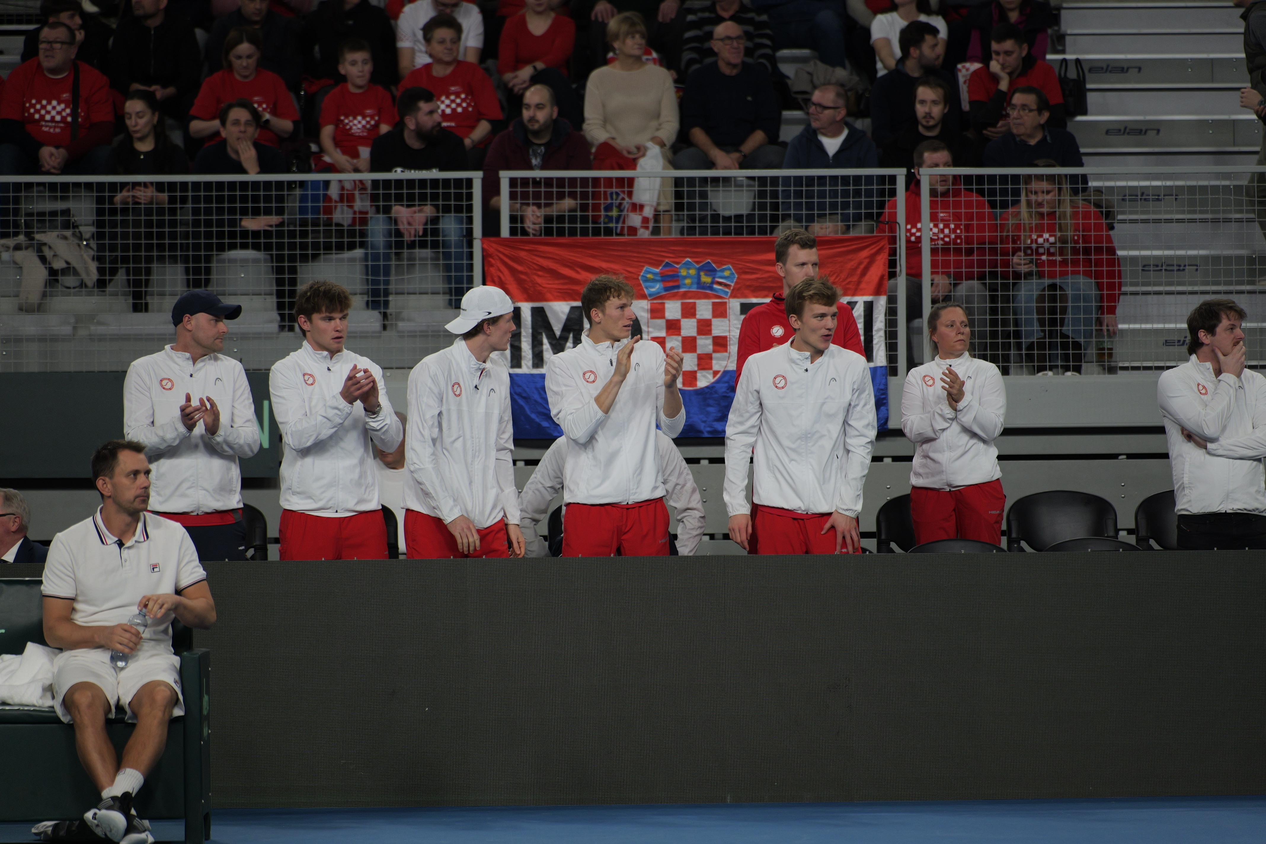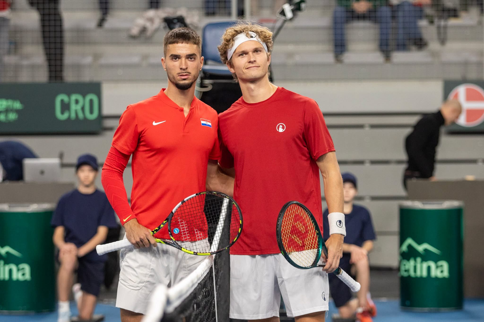 Danas je nakon dva meča, situacija između Hrvatske i Danske izjednačena 1:1. Nakon prvog meča u Areni Varaždin, Danska je povela1:0, s obzirom da je Elmer Møller sa 6:4, 7:6 (3) slavio protiv Mateja Dodiga, no Dino Prižmić je protiv Augusta Holmgrena slavio u tri seta 5:7, 6:0 i 6:2.