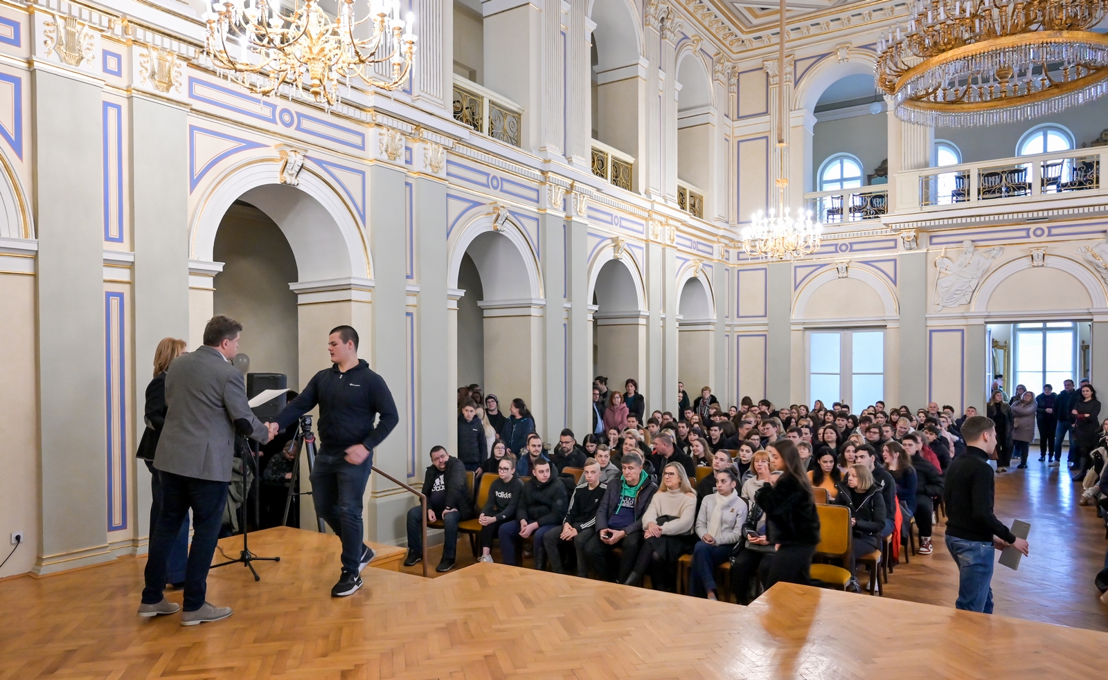 Varaždinskim učenicima i studentima u subotu su u Velikoj koncertnoj dvorani HNK u Varaždinu uručeni ugovori o stipendiranju. Ove godine ukupno je dodijeljena 621 stipendija, 88 za učenike i 533 za studente, a ugovore su im uručili zamjenik gradonačelnika i saborski zastupnik Miroslav Marović i pročelnica Upravnog odjela za društvene djelatnosti Danijela Vusić. U školskoj/akademskoj godini 2025./2026. Grad Varaždin je u proračunu za stipendije osigurao 550.000,00 eura, a u odnosu na prošlu godinu iznos svih stipendija je povećan za 10 %.