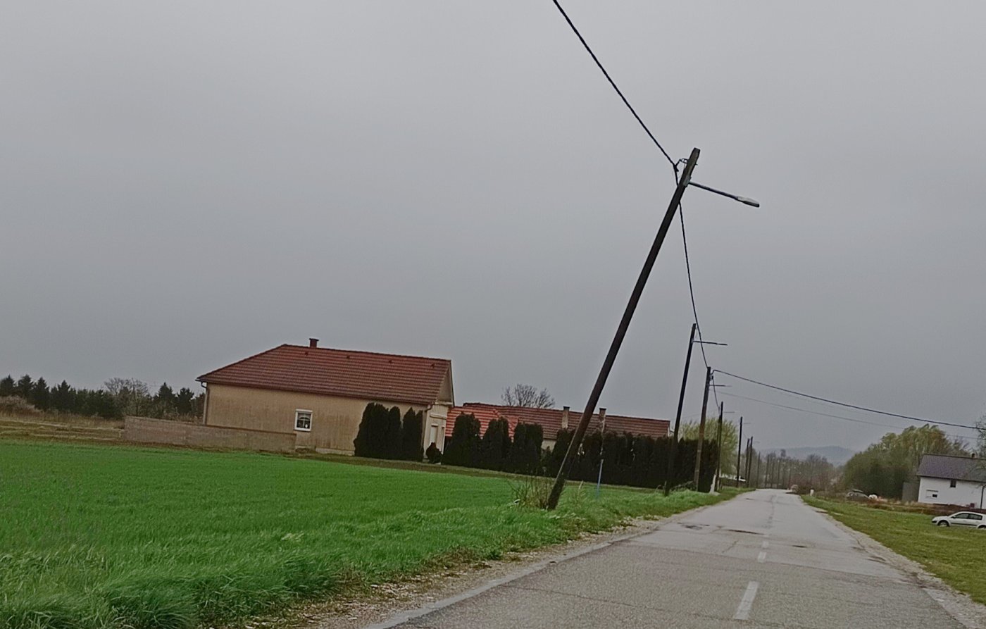 Zbog udara jakog vjetra nagnuo se stup električne mreže u Sajmišnoj ulici u Varaždinu.