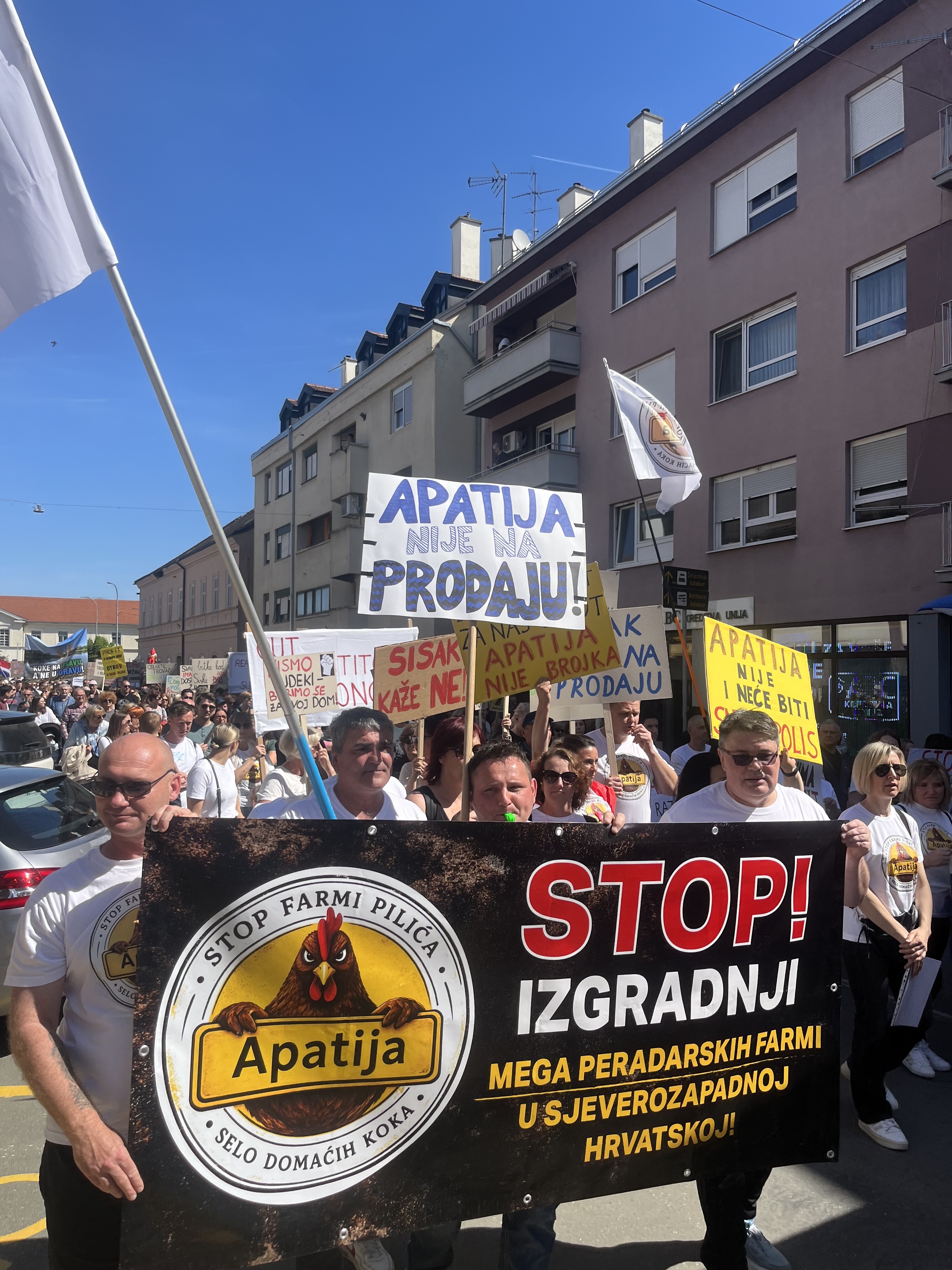 Apatija je naselje sa stotinjak stanovnika koje nema ni sustav kanalizacije, a sada bi se trebao graditi kompleks megafarme pilića. Stanovnici Apatije su jasno i glasno u Sisku poručili: „Apatija nije na prodaju. Apatija nije brojka. Apatija nije megafarma, nego naš dom“.