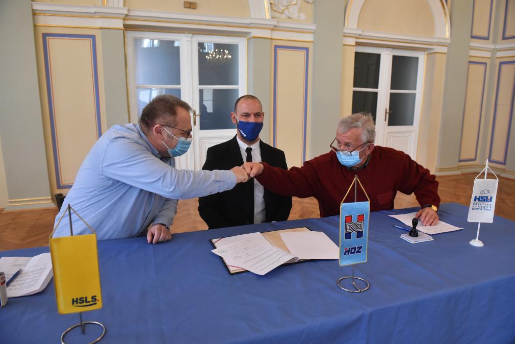 Sporazum su potpisali predsjednik županijskog HDZ-a i saborski zastupnik Anđelko Stričak, predsjednica HSLS-a Varaždinske županije i gradonačelnica Varaždinskih Toplica Dragica Ratković i predsjednica županijskog HSU-a i aktualna članica Skupštine Varaždinske županije Jadranka Bahlen.
