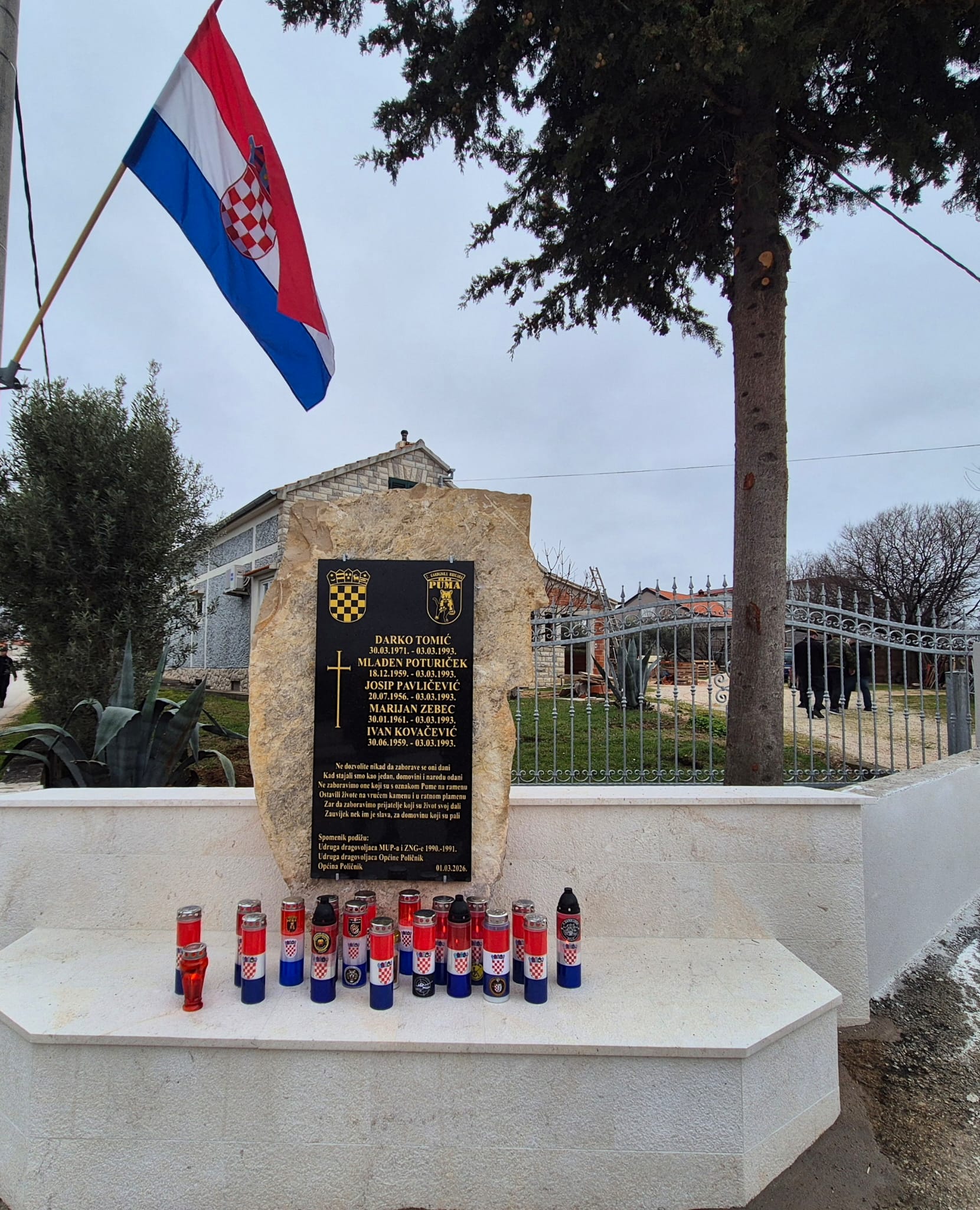 - Ovo spomen-obilježje trajni je podsjetnik svima nama, simbol zahvalnosti, ponosa i dubokog poštovanja prema onima koji su dali najviše što su mogli – svoj život za slobodu Hrvatske. U spomenik su uklesana imena naših poginulih pripadnika koji su prije 33 godine na ovome mjestu položili svoje živote: Darko Tomić, Mladen Poturiček, Josip Pavličević, Marijan Zebec i Ivan Kovačević. Njihovi snovi su, nažalost, prerano zaustavljeni 3. ožujka 1993. godine. Njihova žrtva obvezuje nas da čuvamo istinu o Domovinskom ratu, njegujemo zajedništvo i budućim naraštajima prenosimo vrijednosti za koje su se borili – rekao je predsjednik Udruge "Puma" Robert Puja.