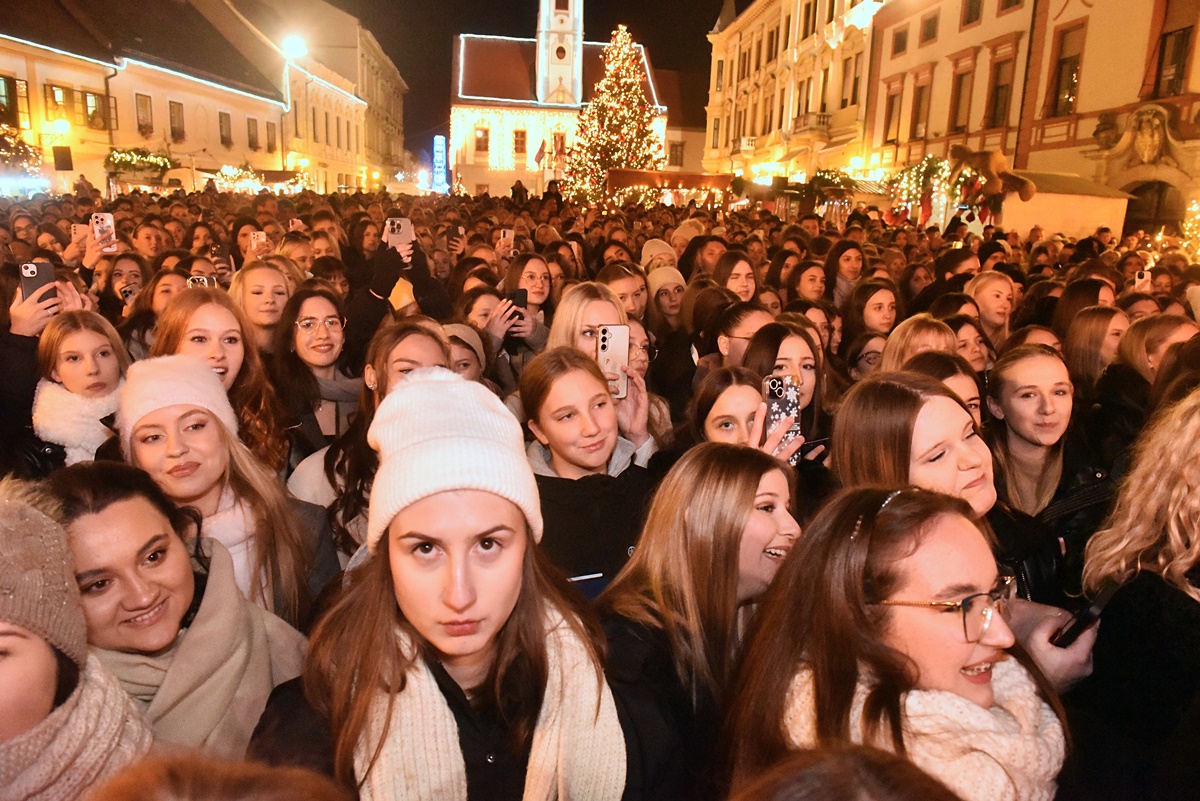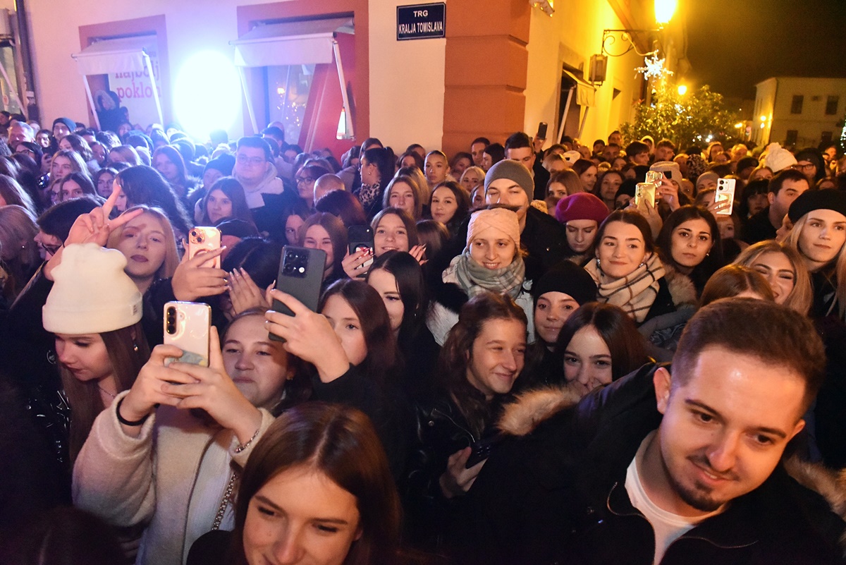 To se još nije dogodilo: pjevač, koji je tek prije tjedan dana najavio svoju prvu pjesmu, uspio je večeras privući publiku koja je gotovo u cijelosti ispunila središnji varaždinski trg uređen u adventskom ozračju. Naravno, riječ je o Jakovu Jozinoviću, koji je već ranije nastuppio u Varaždinu.