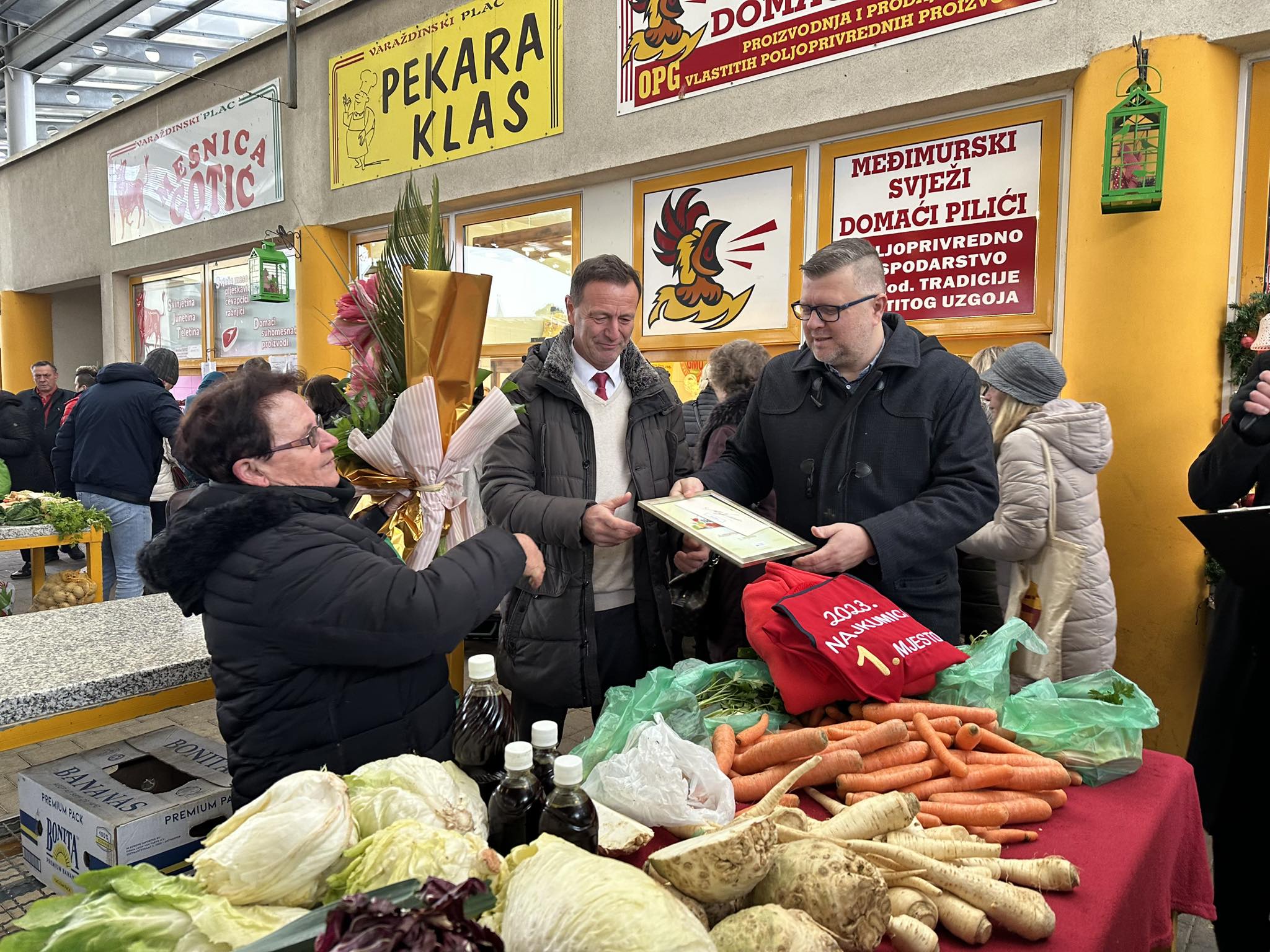 Kumice s varaždinskog placa koje su dobile najviše glasova građana primile su danas priznanja od gradonačelnika Nevena Bosilja. On im je čestitao na njihovom uspjehu i rekao: 'Naš plac okuplja preko 200 proizvođača domaćih proizvoda i biti među tri najbolje nije mala stvar. Hvala vam što nam omogućujete da uživamo u zdravoj i svježoj hrani tijekom cijele godine. Gradonačelnik je također najavio novi projekt na Gradskoj tržnici, izgradnju nadstrešnice između Mliječne hiže i Pravoslavne crkve. 'To je odgovor na potrebe tržnice i nastojanja da se stvori još bolji prostor za prodaju i kupnju na placu u svim vremenskim uvjetima. Radovi bi trebali biti završeni početkom ožujka sljedeće godine i tada će gotovo cijeli plac biti natkriven.'