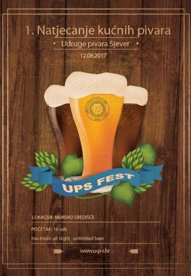 Ove subote Udruga pivara Sjever po prvi puta organizira “UPS FESTival i natjecanje kućnih pivara”. Festival će se održati u Murskom Središću s početkom u 16 sati, na lokaciji “Icojova graba”, gdje će okruženi zelenilom i ribnjacima, prisutni moći uživati u odličnom pivu, ukusnoj hrani i live glazbi.