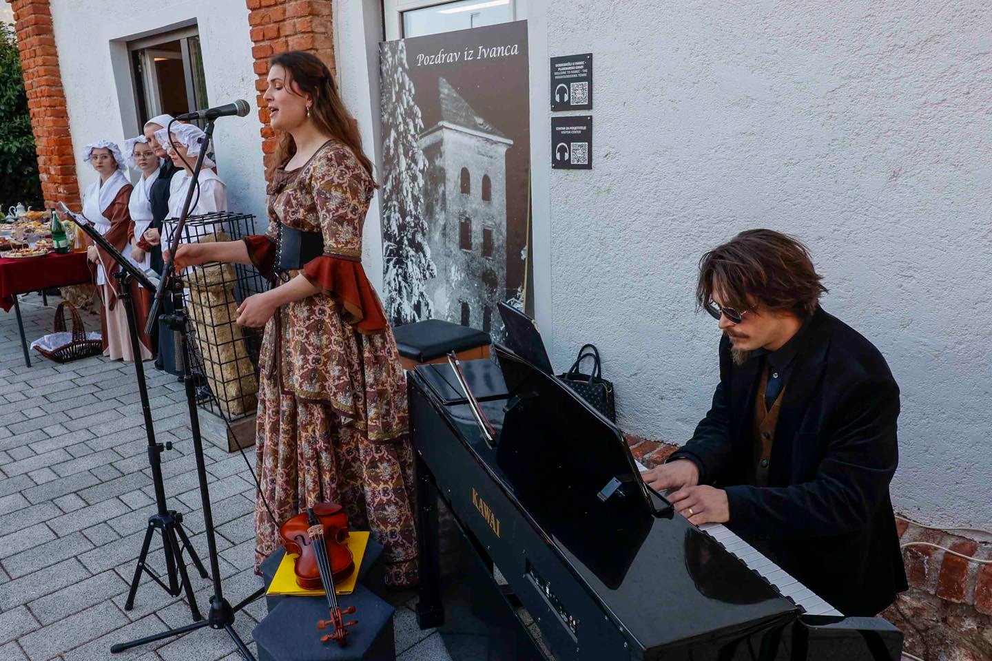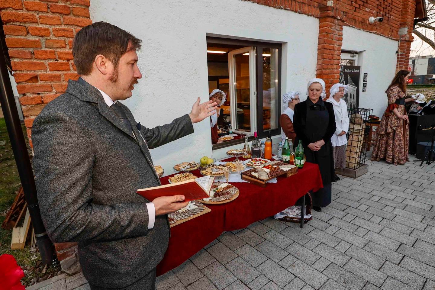 Okupljanje publike, koja se odazvala pozivu organizatora te se na prijmu pojavila u svečanim retro odjevnim kombinacijama ili s modnim detaljima s početka prošlog stoljeća, pratio je glazbeni preludij Martine Sabljak (violina, pjevanje), koja je ujedno utjelovila Božidarovu suprugu Korneliju Kukuljević Sakcinski, i Patrika Zamode (pianino).