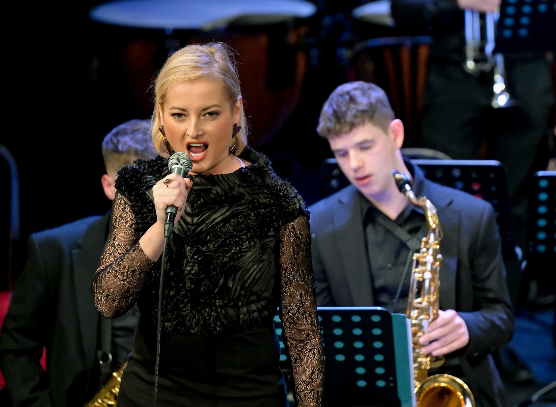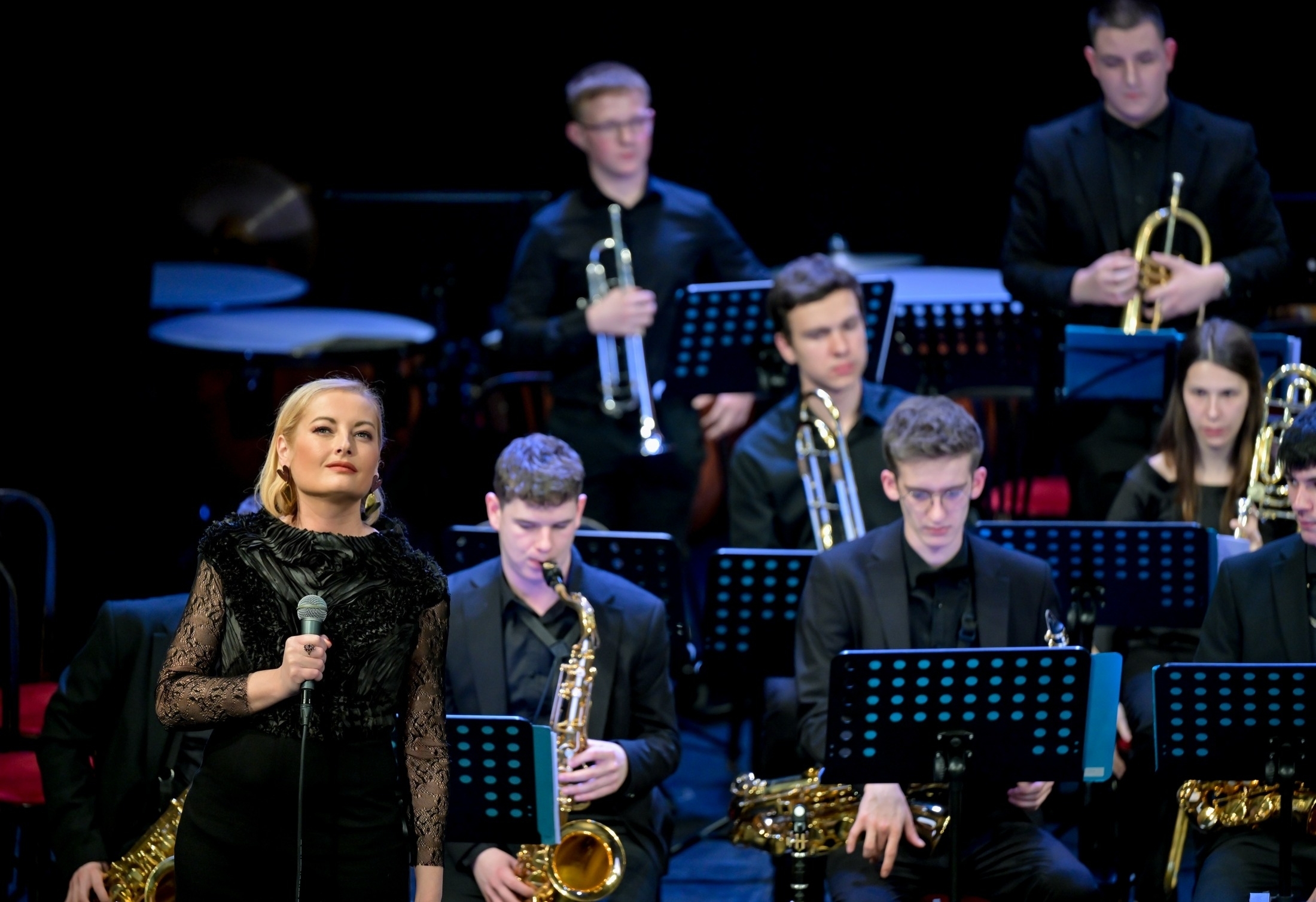 Djelo su izveli Jazz orkestar škole, pod dirigentskom palicom nastavnika Gordana Peršija, i mezzosopranistica Blanka Tkalčić, a nadahnuta interpretacija nagrađena je dugotrajnim pljeskom publike.