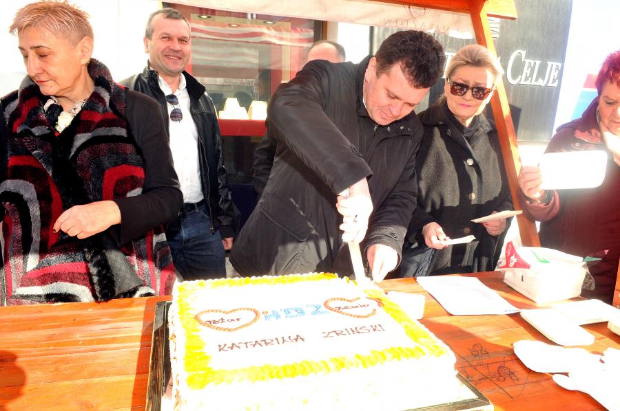 Zajednica žena HDZ-a "Katarina Zrinski" grada Varaždina i Varaždinske županije danas je na Franjevačkom trgu građanima povodom Valentinova dijelila tradicionalnu tortu "Katarina Zrinski".