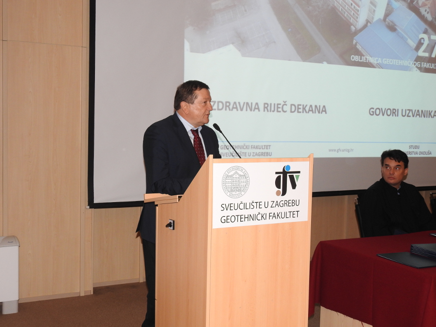 Na značaj 27. godina postojanja Geotehničkog fakulteta kao i 48. obljetnicu visokog obrazovanja na ovoj instituciji, u svom pozdravnom govoru osvrnuo se rektor Zagrebačkog sveučilišta, prof. dr. sc. Damir Boras.
