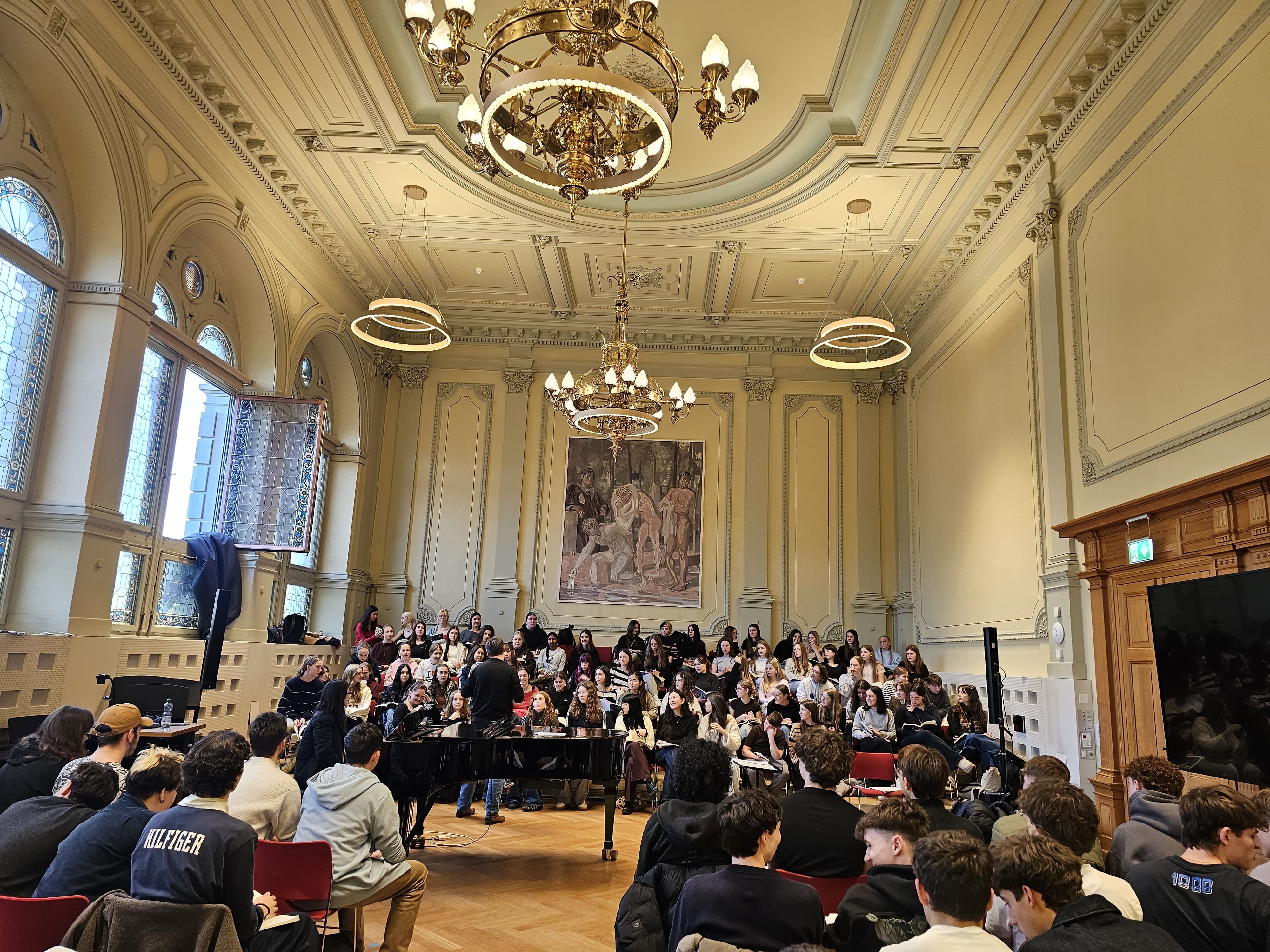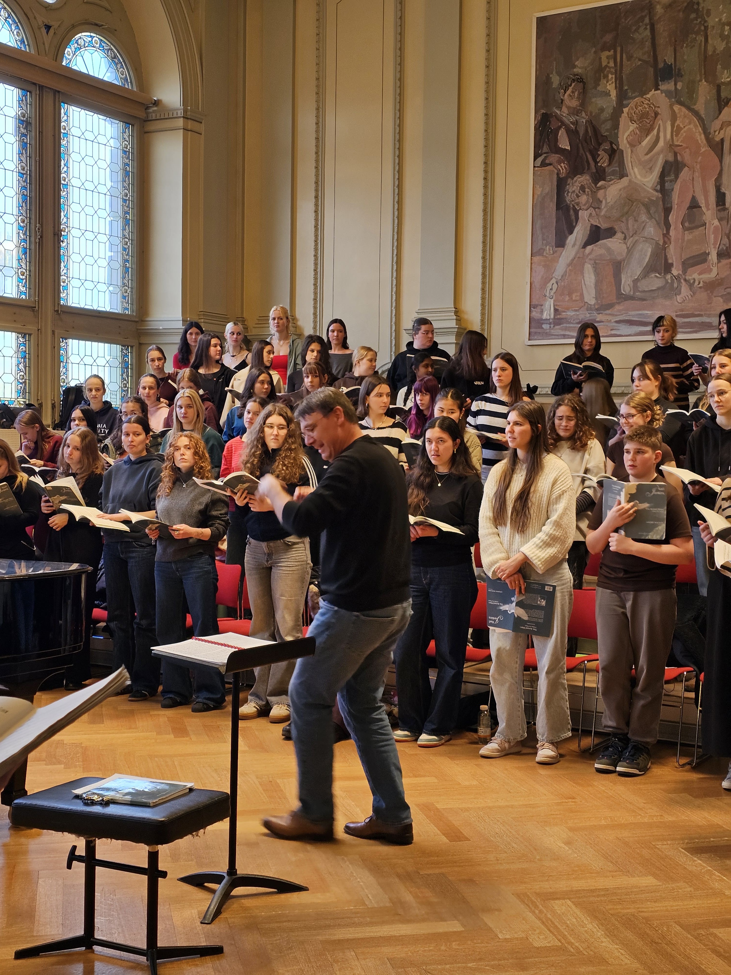 Učenici Glazbene škole u Varaždinu, koji ovih dana borave u Švicarskoj u sklopu međunarodne suradnje s KantonsschuleSchaffhausen, nastavljaju intenzivne i zahtjevne pripreme za izvedbu monumentalnog djela TheArmed Man: A Mass for Peace skladatelja Karla Jenkinsa. Koncert će se održati 28. ožujka 2026. godine u crkvi St. Johann u Schaffhausenu, čime će se zaokružiti ovaj značajan međunarodni umjetnički pothvat.