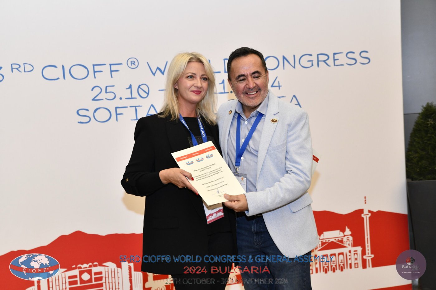 Certifikat je uručen idejnoj začetnici i direktorici festivala, Petri Golubar, na 53. CIOFF svjetskom kongresu održanom u Sofiji, glavnom gradu Bugarske, od 25. listopada do 3. studenog 2024.