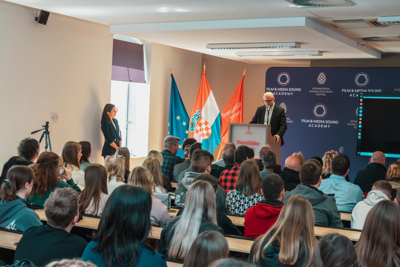 - Izuzetna mi je čast poželjeti vam dobrodošlicu na Sveučilište Sjever, sveučilište koje brine o studentima i koje uvijek želi više i bolje. Danas imate jedinstvenu priliku učiti od apsolutno najboljih svjetskih stručnjaka u području filmskog zvuka - istaknuo je rektor Vusić na početku panela kojeg je moderirala nagrađivana novinarka The Hollywood Reporter i Variety, Carolyn Giardina.