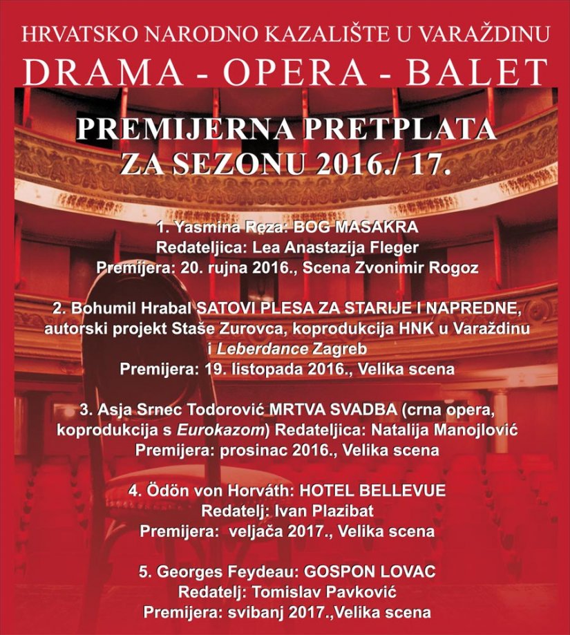 Sve dodatne informacije mogu se dobiti na blagajni Kazališta radnim danom od 10 do 12 i od 18 do 9,30 sati,