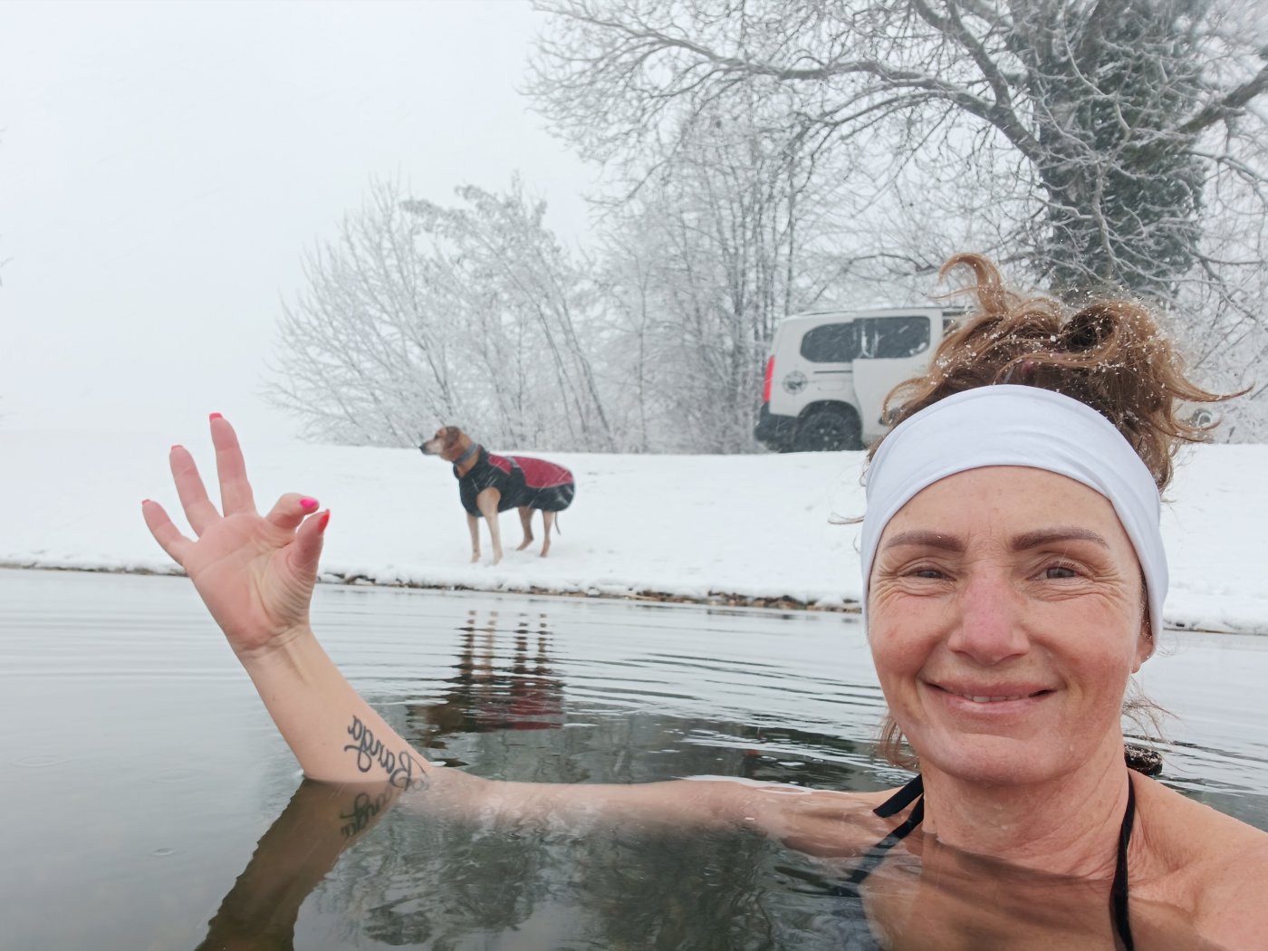I dok većini nas smrtnika snijeg zadaje poteškoće u prometu, nekima je hladnoća prilika za ispitivanje vlastitih granica. Varaždinska triatlonka Karla Čović poslala nam je fotografije sa svog "tradicionalnog zimskog kupanja", ovoga puta na starim Bajerima, na Motičnjaku. Članica Triatlon kluba Ultra i njezin vjeran pas Rhodesian Ridgeback Fuma već osmu godinu za redom uživaju u ovakvim zimskim radostima.