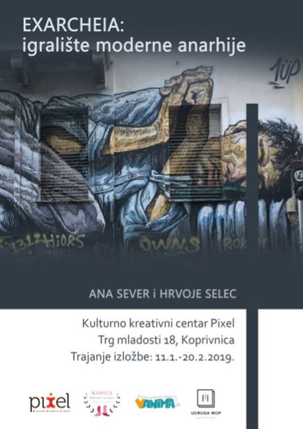Nakon izlaganja u Malom salonu palače Sermage u Varaždinu prošle godine, u petak 11. siječnja u Kulturno kreativnom centru Pixel u Koprivnici otvorena je izložba "EXARCHEIA: igralište moderne anarhije“ u organizaciji Udruge Mamuze, Udruge MOP Sveučilišta Sjever i Filmsko-kreativnog studija VANIMA.