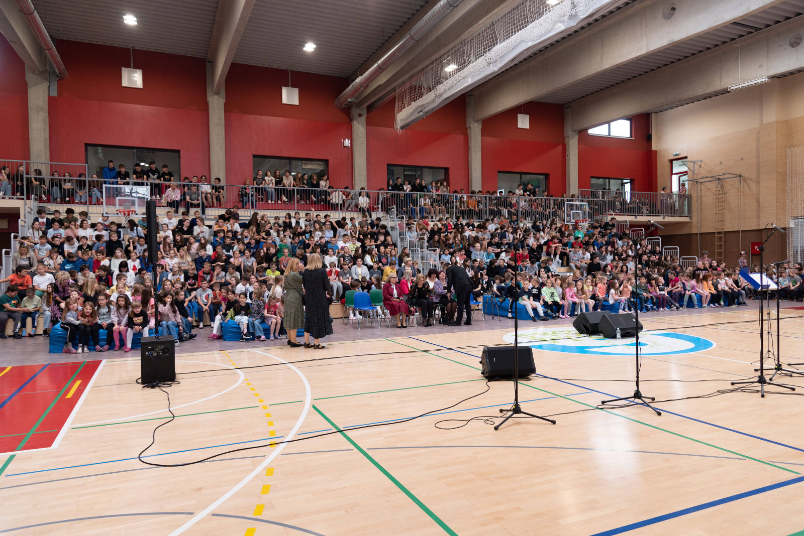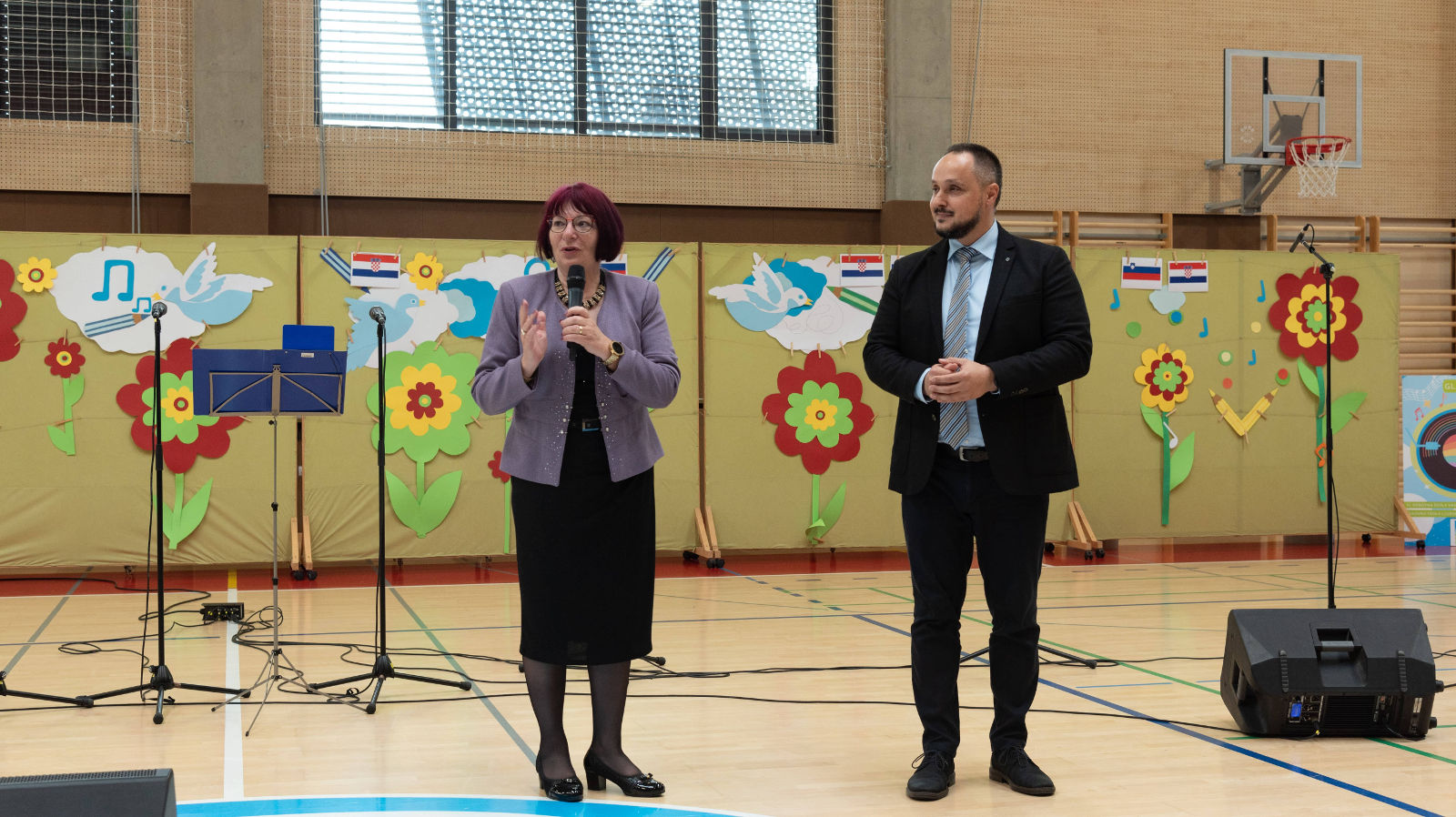 Goste su na slovenskom jeziku pozdravili i voditelji programa, učenici Rosa Minđek i Stjepan Canjuga. Bogat glazbeni program uključivao je izvedbe školskih zborova obje škole. Voditelj mješovitog pjevačkog zbora i instrumentalnog ansambla OŠ Ljudski vrt je Tomaž Mohorko, dok je voditeljica zbora VI. osnovne škole Tena Glavak, učiteljica glazbene kulture. Voditelji školskog benda su Damir Tomičić i Tomislav Herceg.