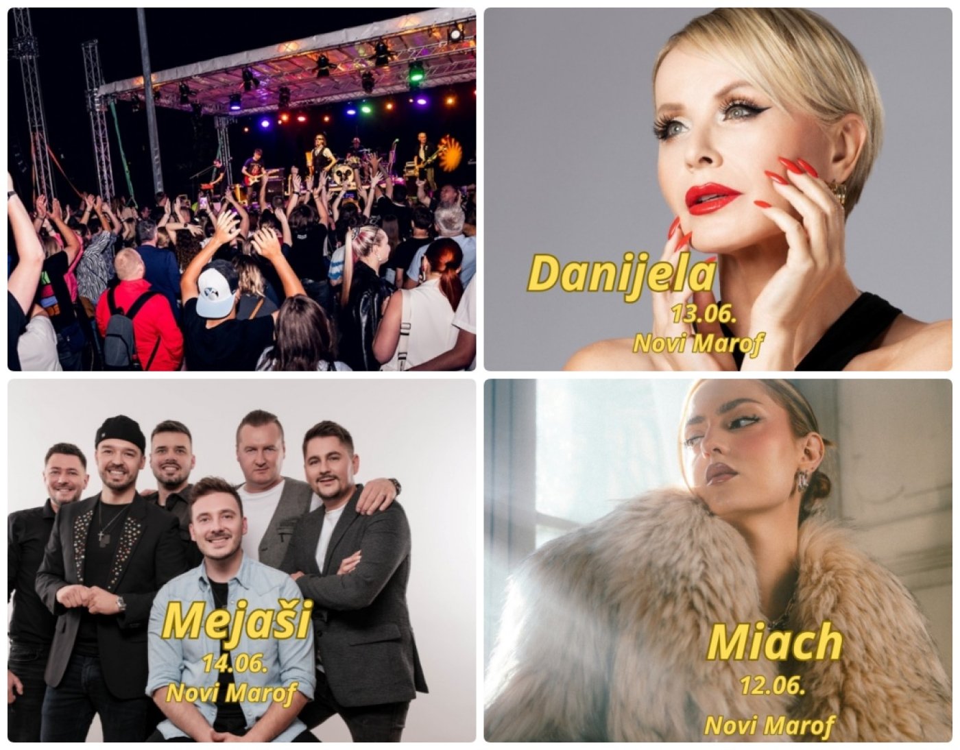 Njih će tako 12. lipnja na glavnoj pozornici zabavljati Miach, miljenica mlađe publike, zatim 13. lipnja Danijela Martinović, za sve koji vole dobre i bezvremenske hitove, a 14. lipnja stižu Mejaši koji će u grad zasigurno donijeti veselje, ples i pravu feštu.