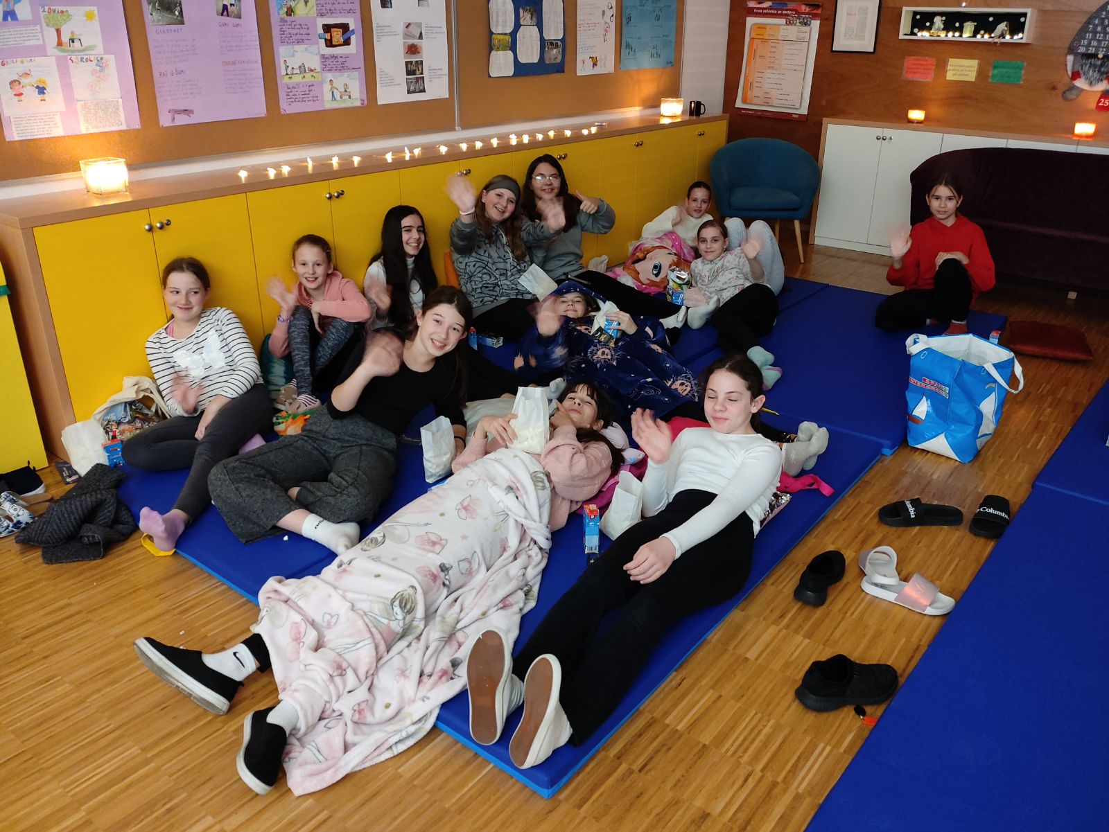 Ispred učionice poništene su im ulaznice te su dobili kokice i sok, kako bi se doista osjećali kao da su u pravome kinu. Potom su ušli u učionicu koja je bila obasjana sjajem svijeća, lampiona i božićnih žaruljica, a s ekrana je treperio naslov filma – "Into the beat: Zapleši srcem".