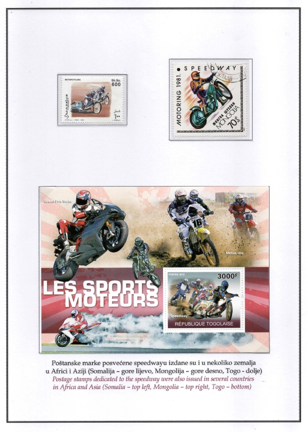 Godina u kojoj je različitim događanjima u svijetu obilježena 100. obljetnica pokretanja speedwaya, ostat će zabilježena i po predstavljanju filatelije vezane uz ovu atraktivnu disciplinu moto sporta.