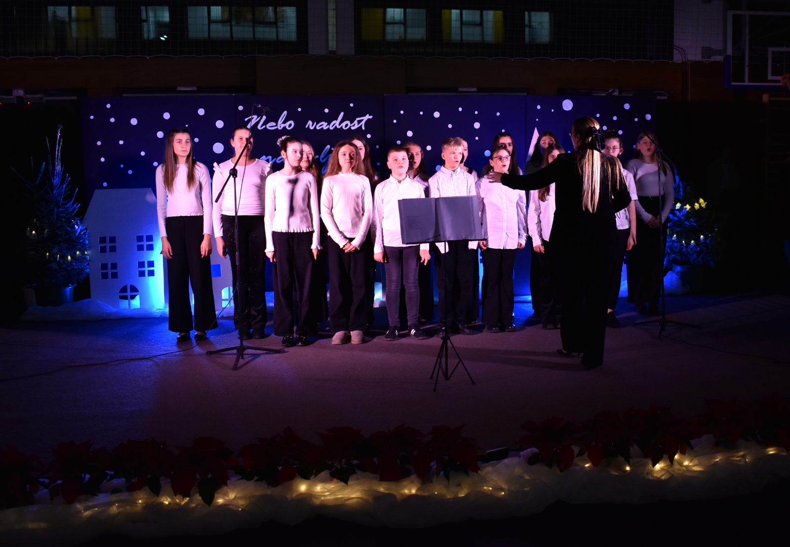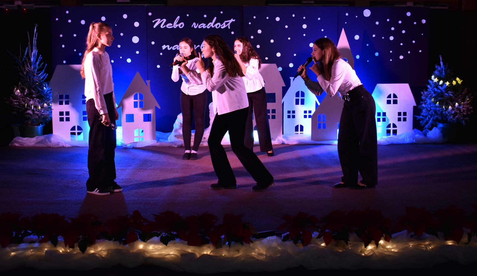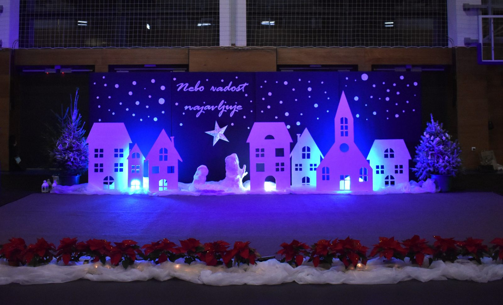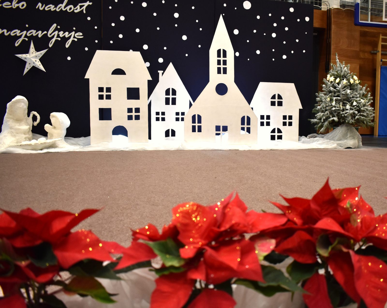 Priredba je započela svečano – krasnoslovom pjesme "Nebo radost najavljuje" u izvedbi Leone Kobal (5.b) te skladbom "O, Happy Day" koju je izveo veliki Pjevački zbor uz solistice Janu Kreš (7.b) i Franku Barulek (8.a).