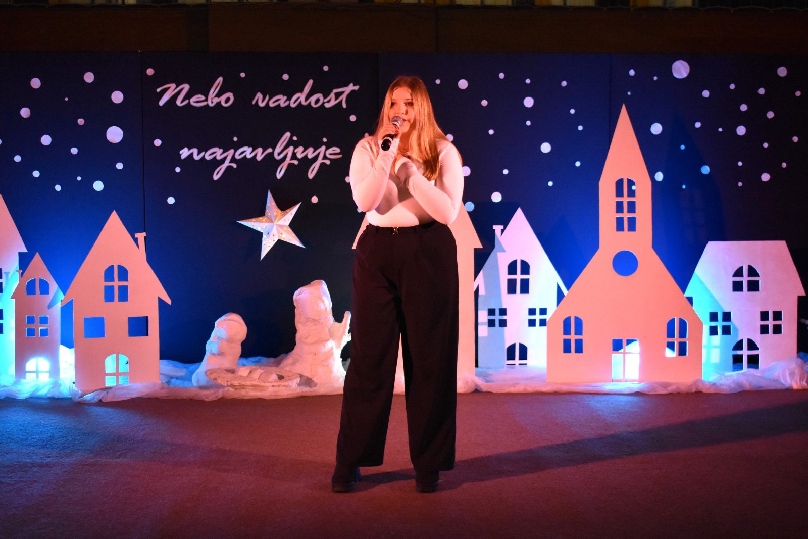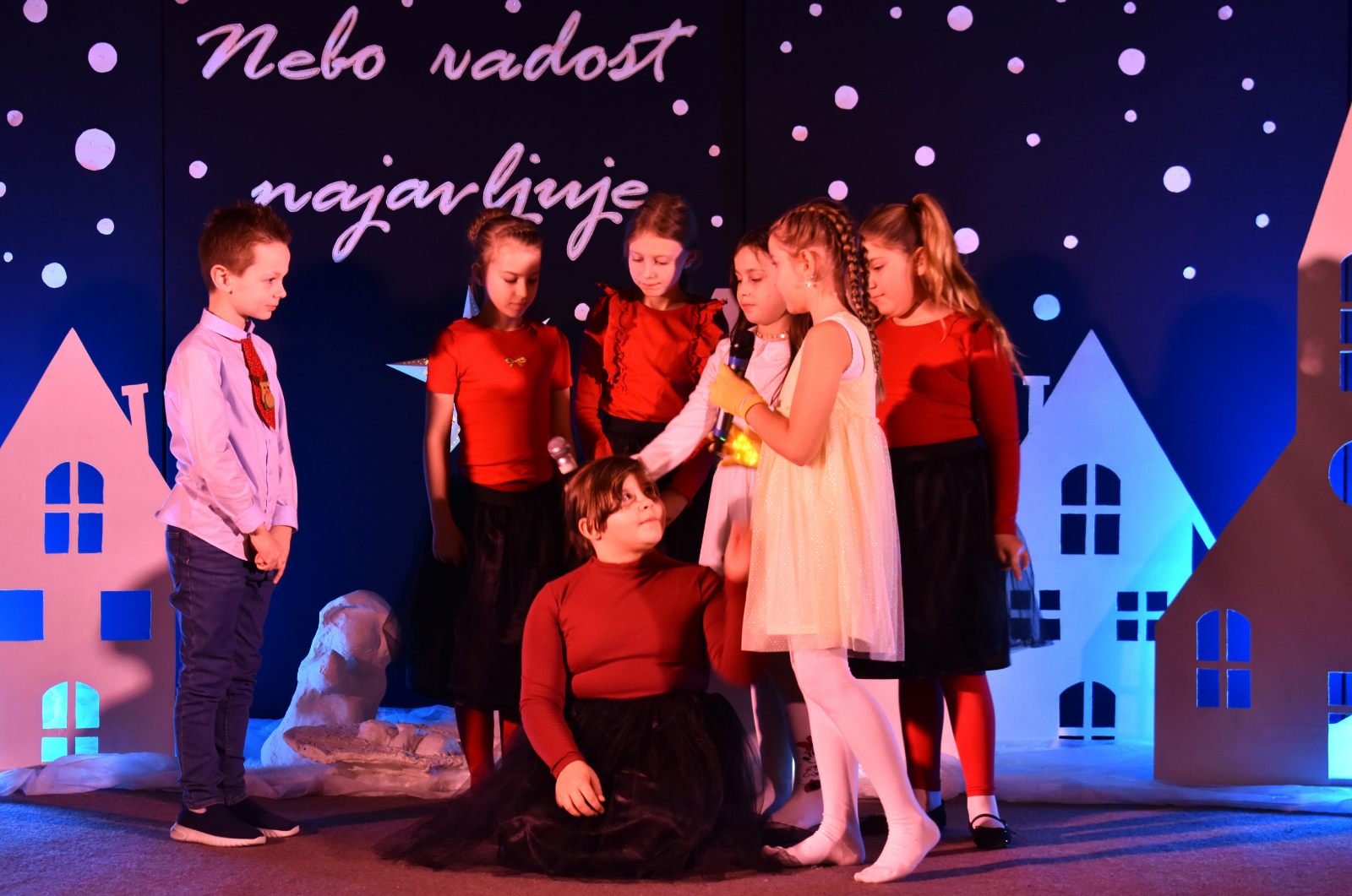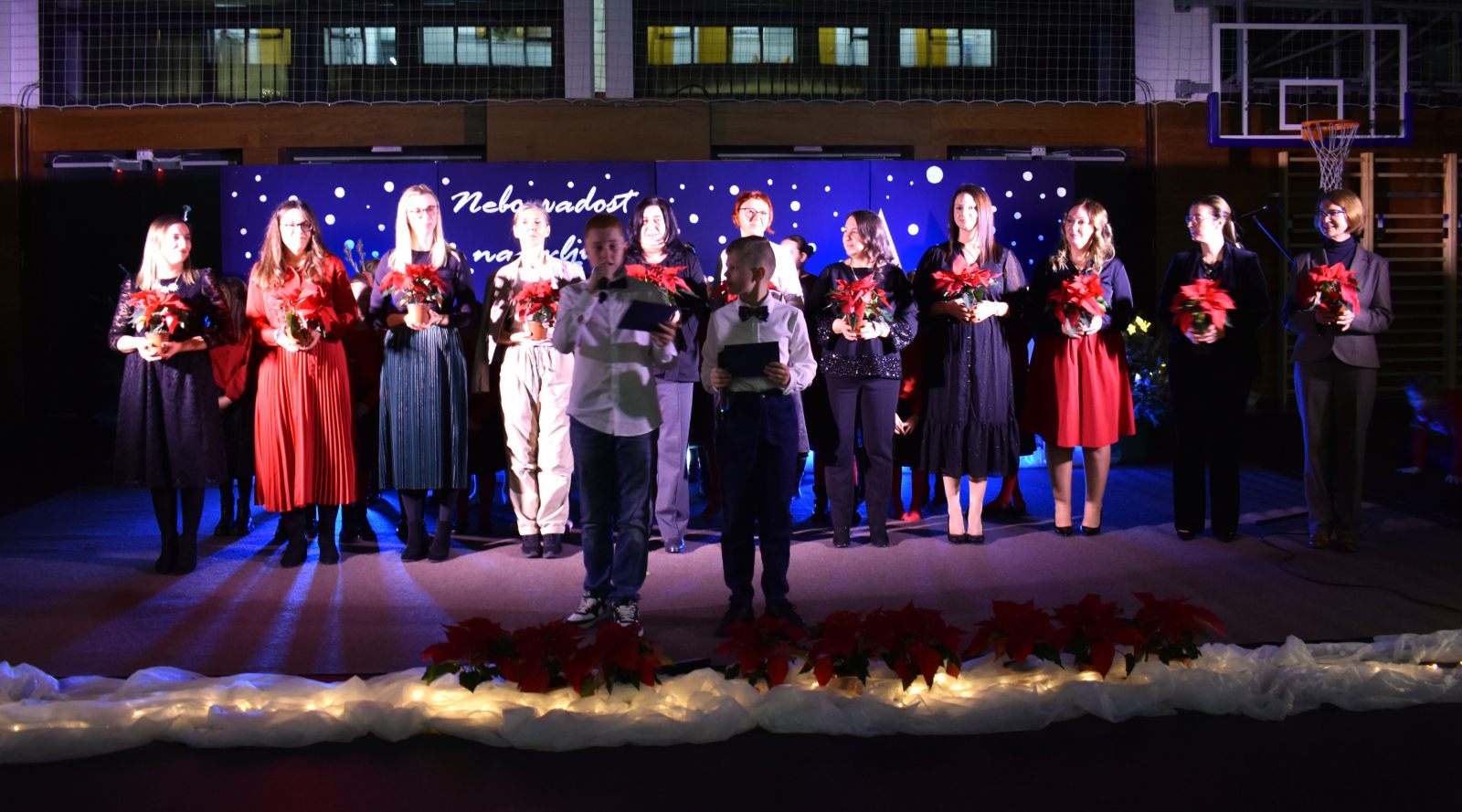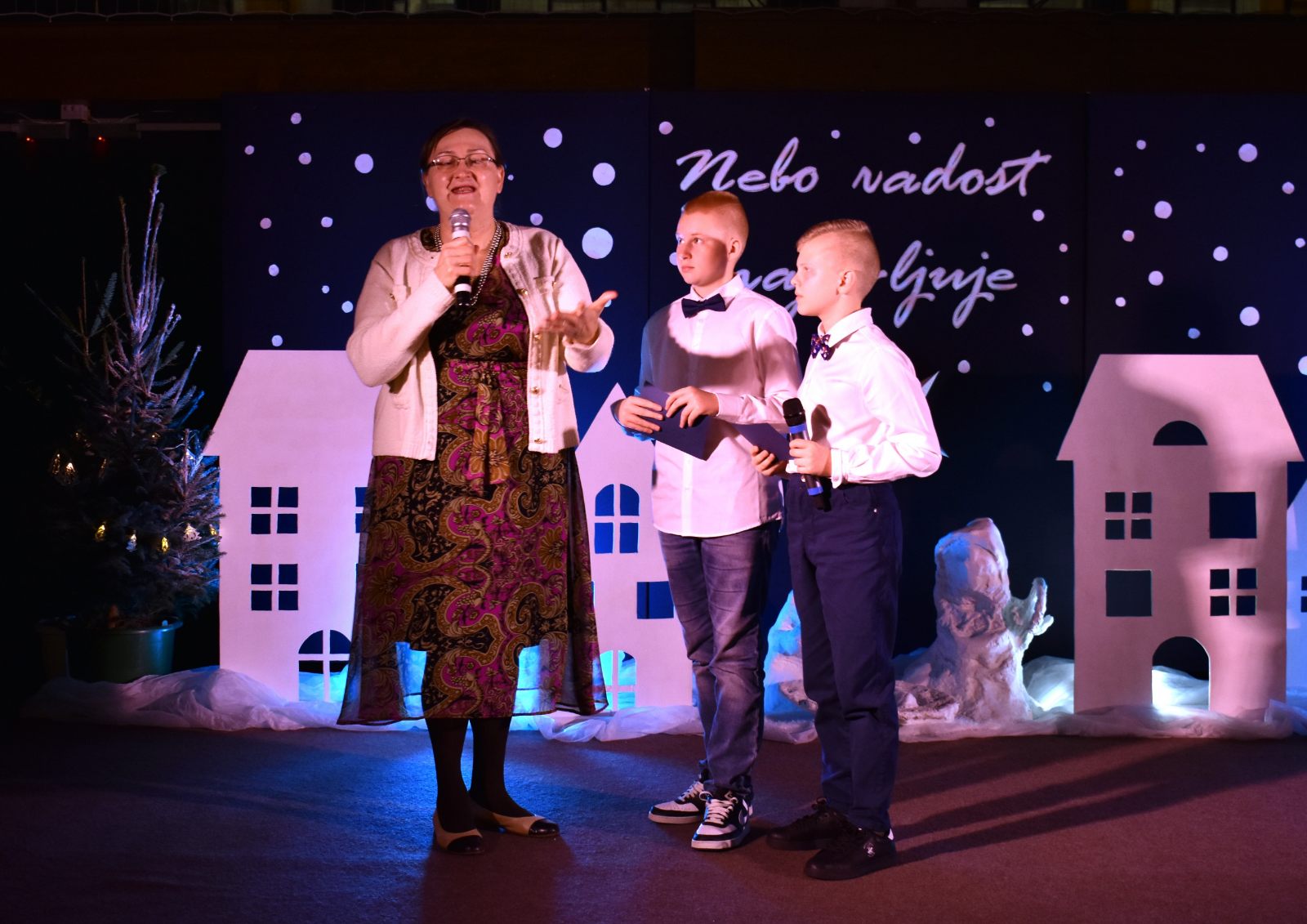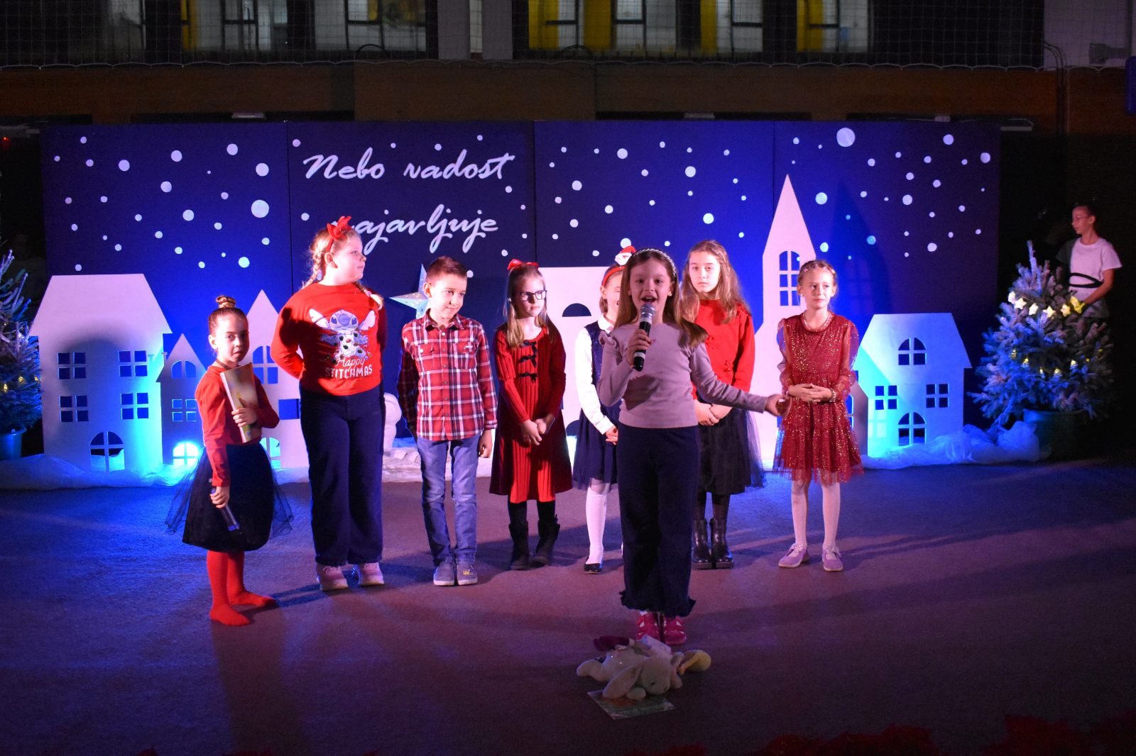 Program priredbe vodili su Teo Sodar (6.b) i Rafael Barulek (6.a), koji su toplim riječima pozdravili sve prisutne i poveli publiku božićnom pričom ispunjenom sjećanjima i porukama nade.