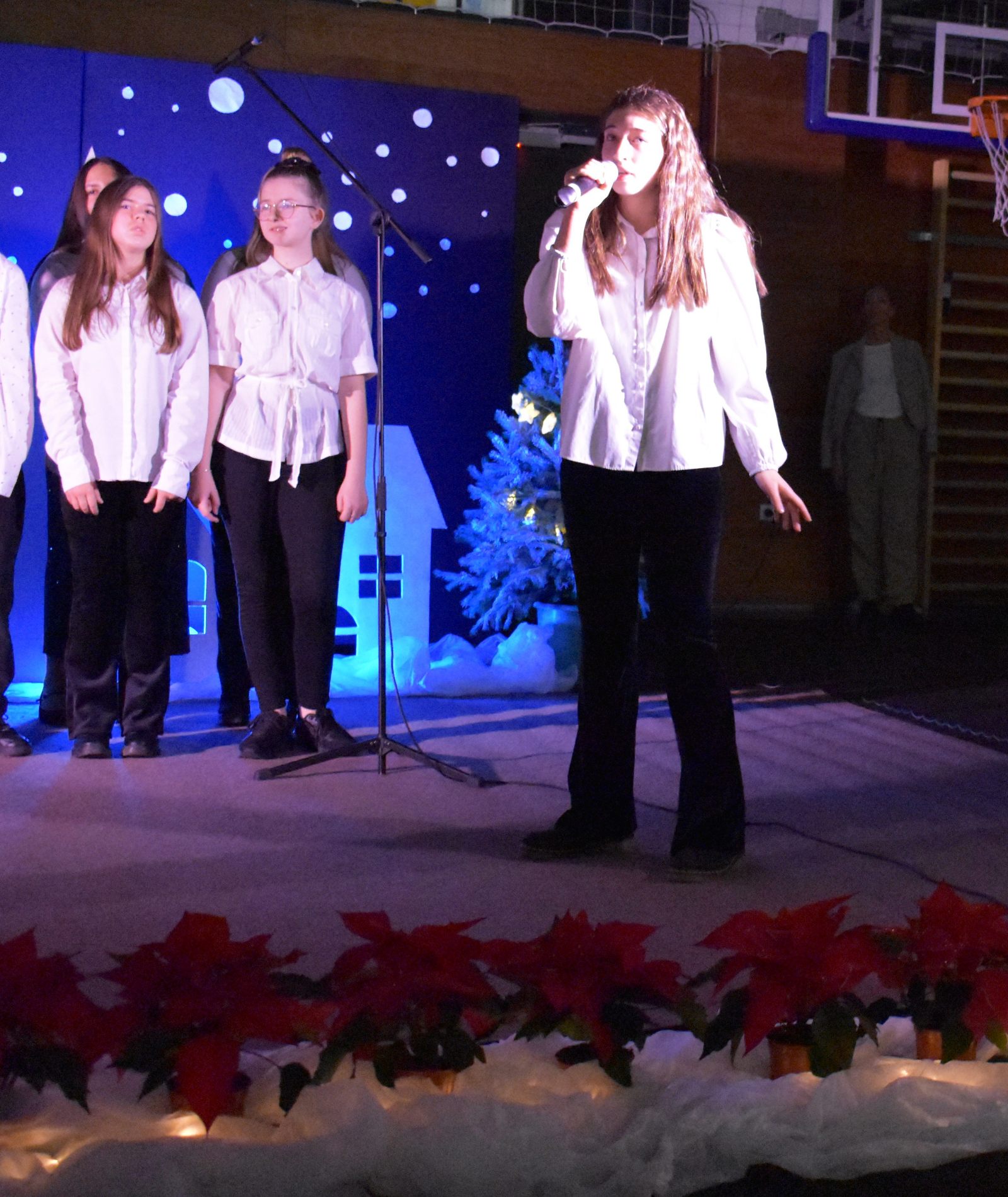 Zimski su ugođaj na sceni dodatno dočarali članovi Tamburaškoga sastava koji su izveli skladbu "Bijeli Božić", Gita Šantek (8.a) recitacijom Domjanićeve pjesme "Weihnachten" na njemačkome jeziku te Hana Mikić, Emma Cikač, Gita Ribić (7.a), Jana Kreš i Ana Šestak (7.b) recitalom "U tišini snijega".