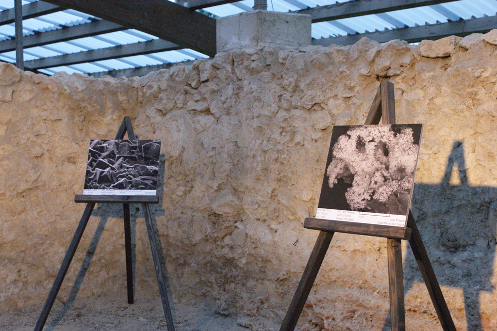 Ukupno je izloženo 12 fotografija koje su nastale snimanjem prevlake minerala elementarnog sumpora i kalcita s lokaliteta Aquae lasae, a autori fotografija su akademik prof. dr.sc. Vladimir Bermanec i dr.sc. Hrvoje Posilović.