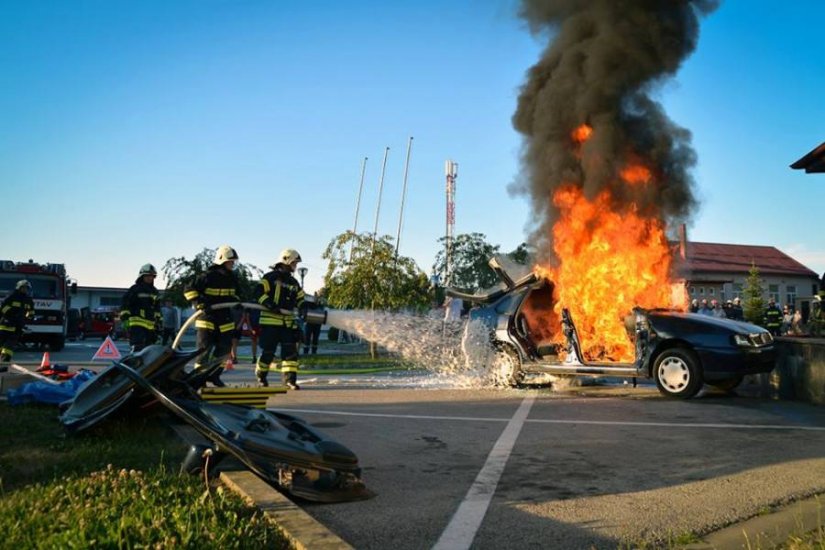 Ovom uspješnom i atraktivnom pokaznom vježbom, vatrogasci su prikazali način spašavanja unesrećenih osoba iz automobila pomoću električnih škara i razupora, pretraživanje prostorija zapaljene zgrade te spašavanje osobe pomoću zračnog jastuka.