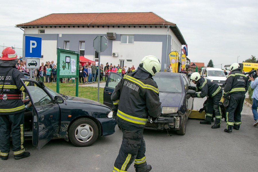 Sama akcija započela je simulacijom prometne nezgode s ozlijeđenim osobama. Nakon poziva načelnika Općine Sračinec Božidara Novoselca, prvi su na mjesto događaja došli policajci PU Varaždinske, a nakon što su osigurali sigurnost prometa oko mjesta nesreće, stigli su i vatrogasci Javne vatrogasne postrojbe Grada Varaždina. Oni su pristupili izvlačenju unesrećenih osoba iz automobila, a zbrinuli su ih djelatnici Gradskog društva Crvenog križa Varaždin.