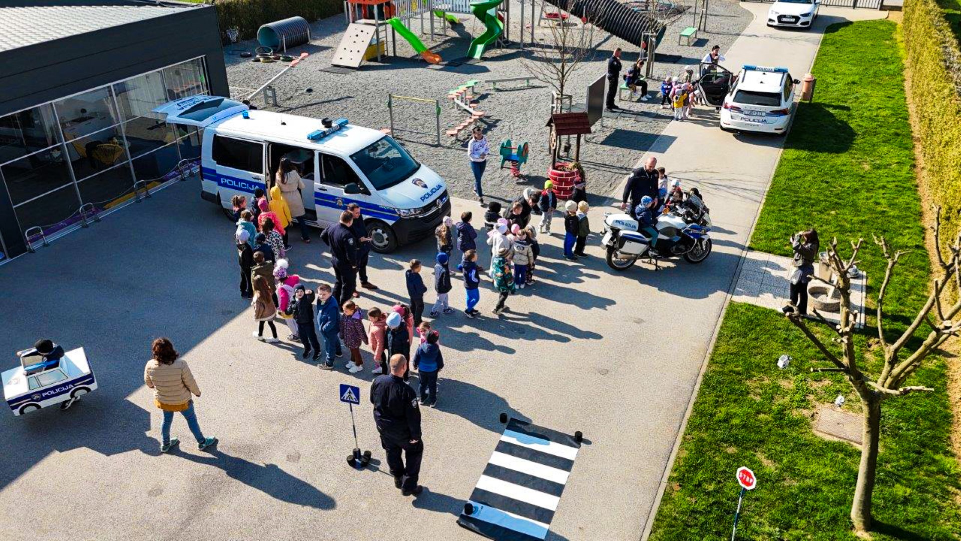Posebno oduševljenje izazvao je policijski dron, koji je privukao najveću pažnju djece. Djeca su s velikim zanimanjem pratila njegov rad, promatrala način upravljanja te su imala priliku vidjeti sebe na zaslonu upravljačkog sustava. Ovaj moderan i interaktivan prikaz dodatno je pobudio njihovu znatiželju i učinio cijelo iskustvo još zanimljivijim i nezaboravnim.