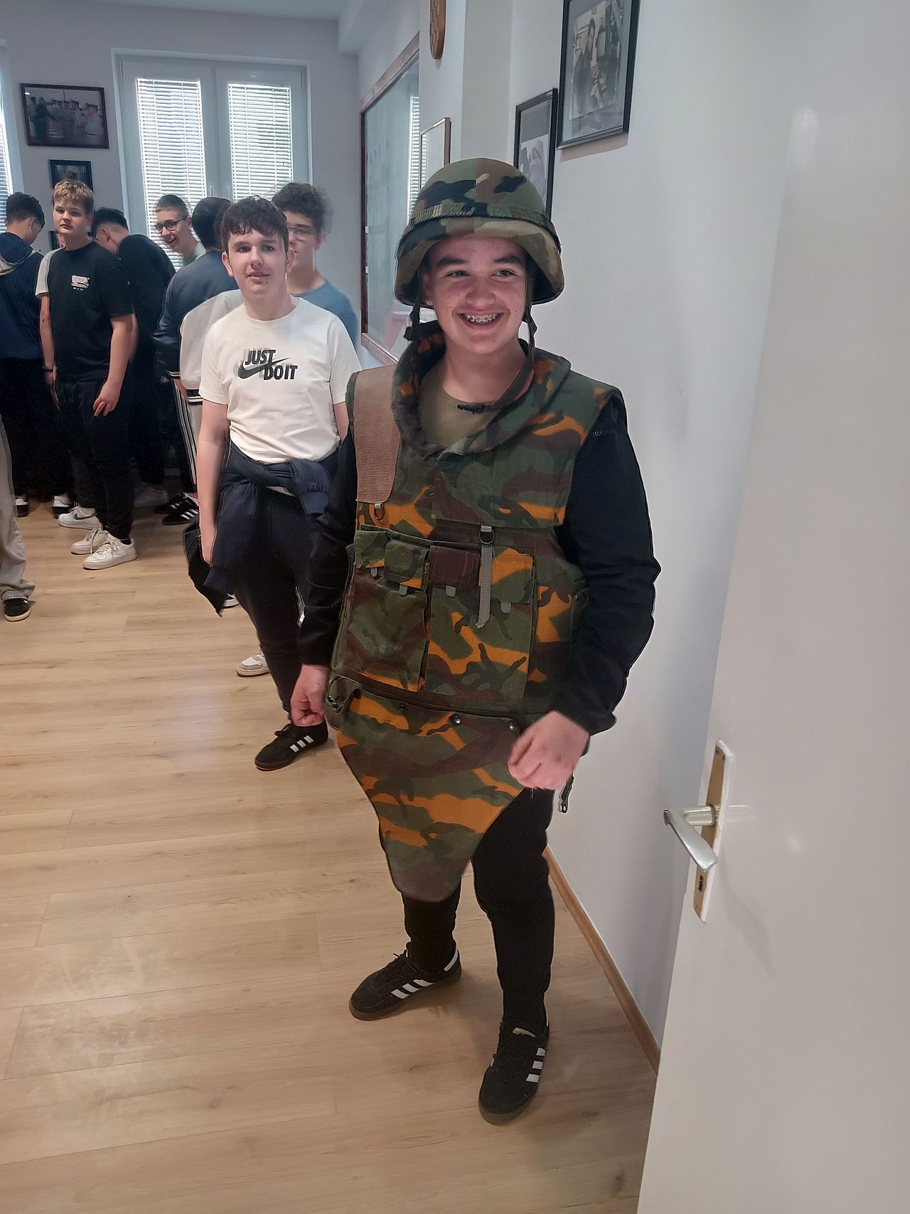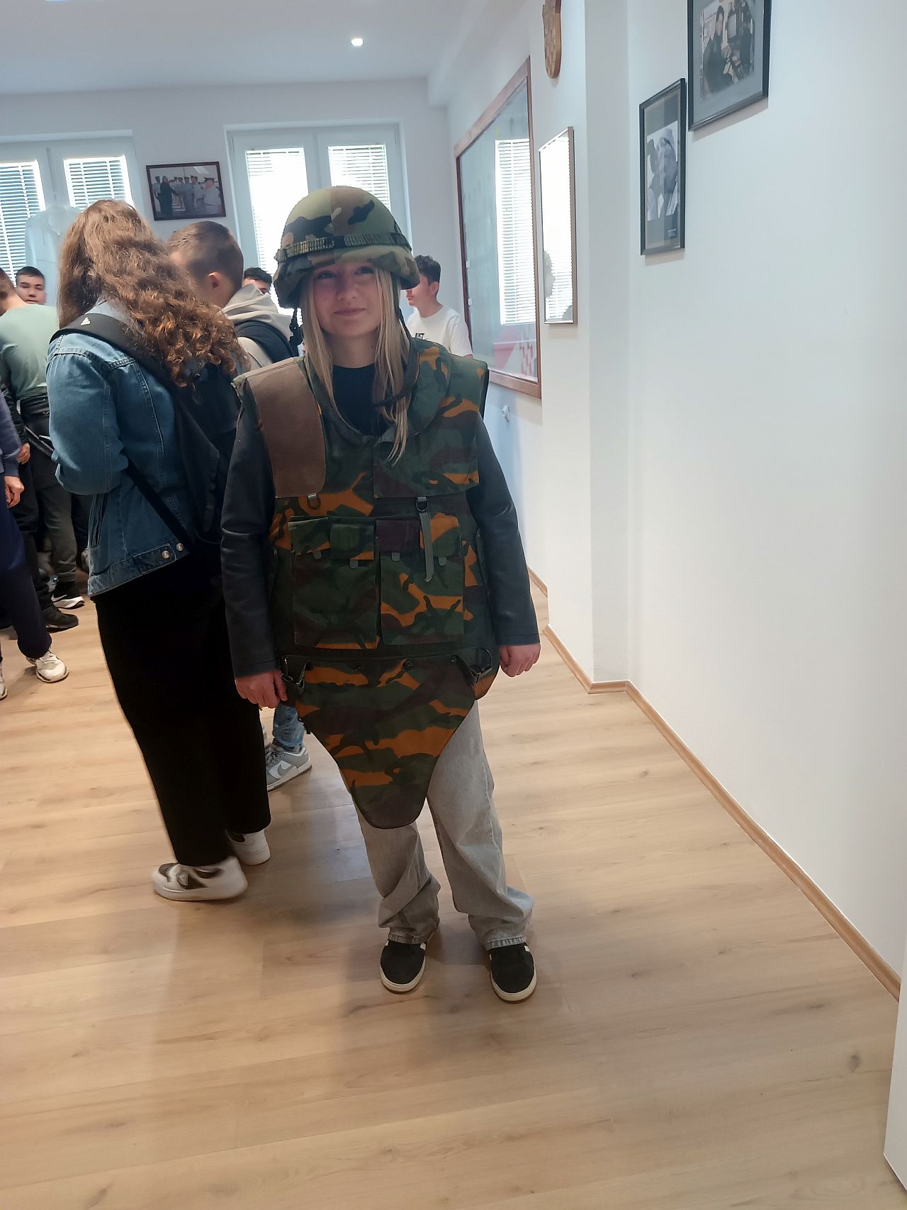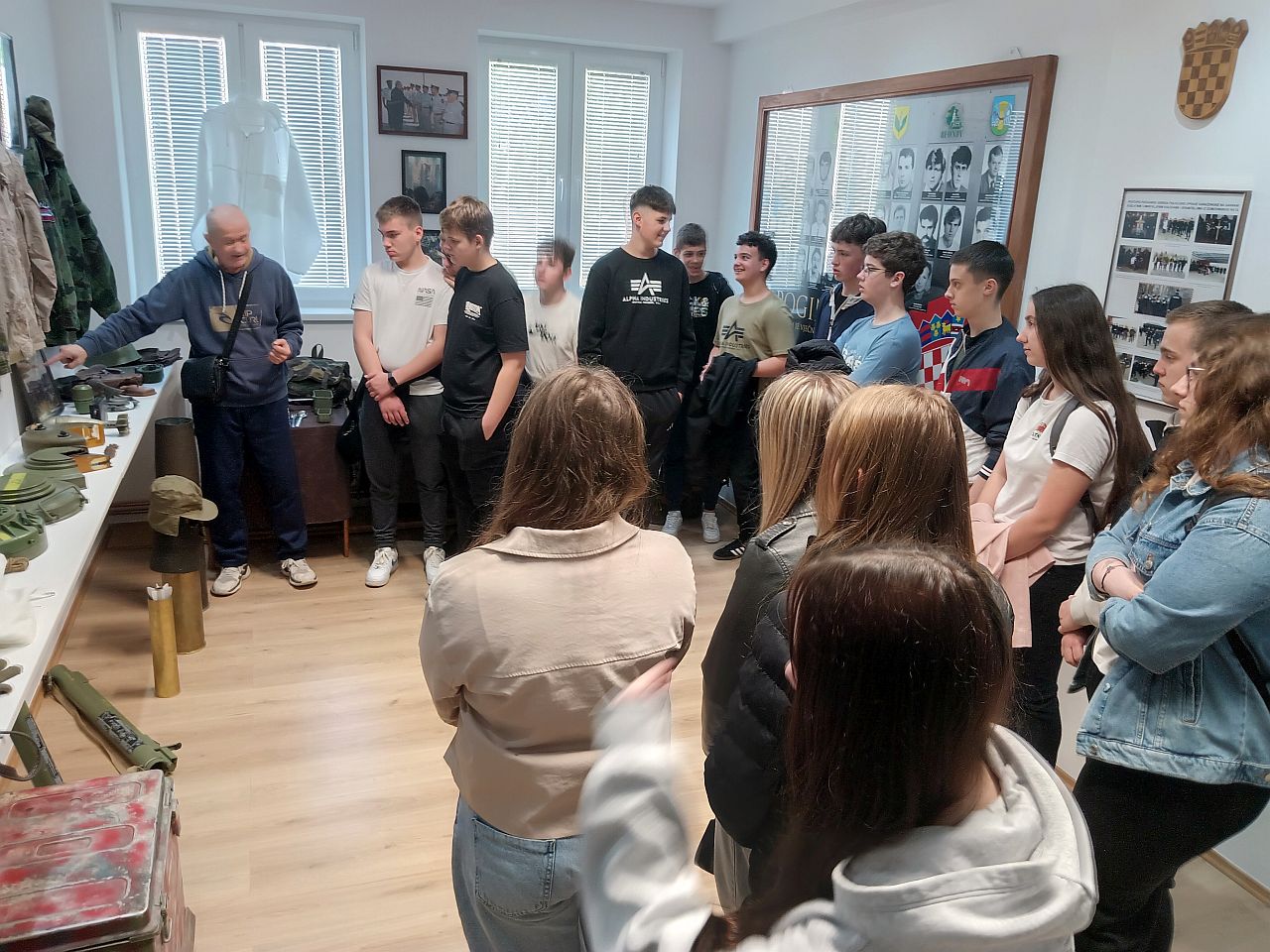 Uz pojedine fotografije i oznake domovinske i agresorske vojske, najveće zanimanje pokazali su za opremu i naoružanje, koje se nalaze i posebnoj prostoriji Centra. Neki su se ohrabrili pa su isprobali zaštitne kacige, jakne, košulje, 'pancirke', a u ruke stavili i ispucane 'zolje'. Voditelj edukacijskog programa Centra, Pjer Jagetić, malo im je približio način ispaljivanja topničkih granata, a kako se bliži izložba u njihovom kraju, u Dvoru Trakošćan, približio im svoju priču o „Djevojčici s lutkom iz prašine“ iz Pakraca.
