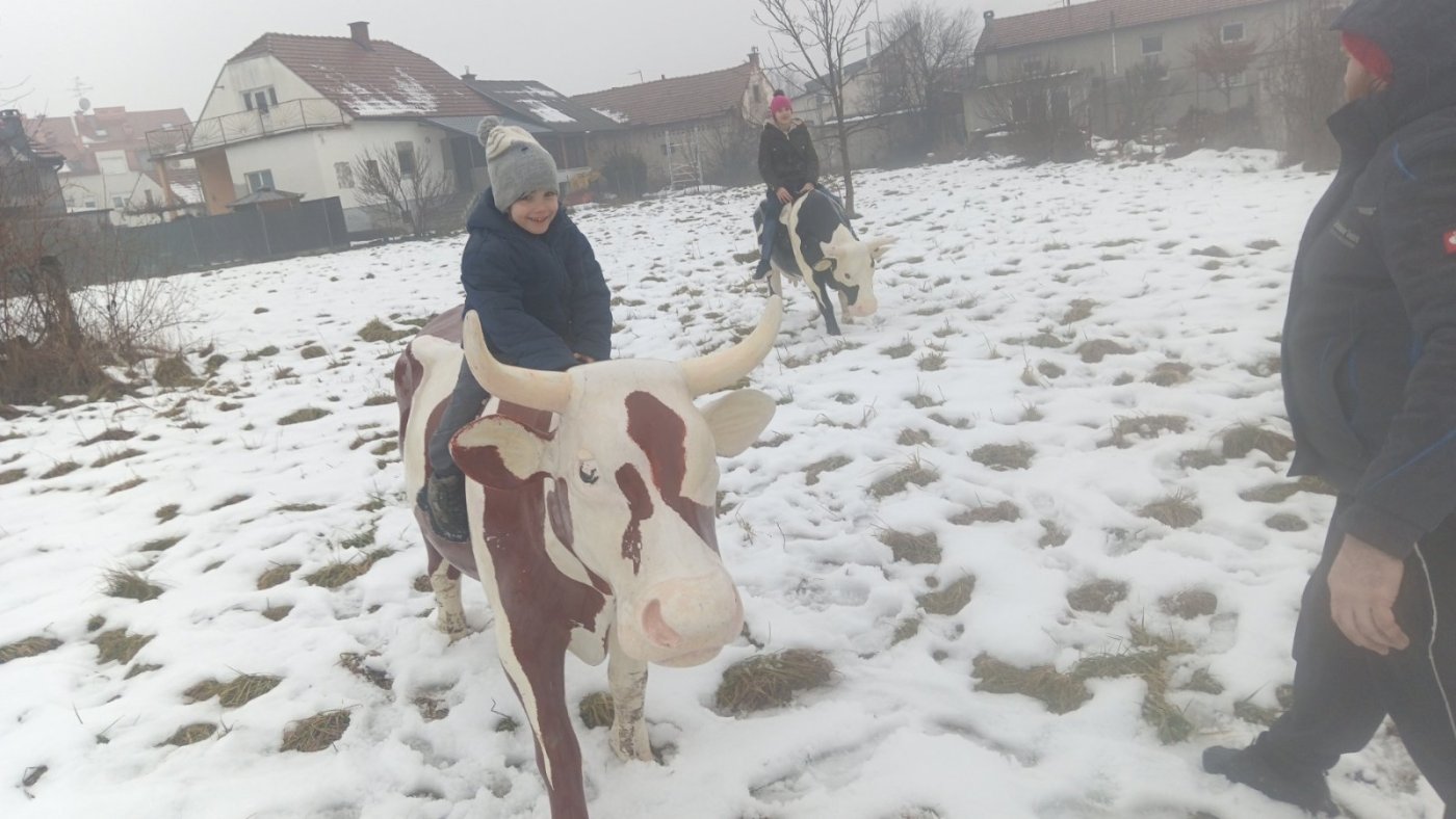 U nedostatku sanjke, kojo su ove zime bile vrlo tražena roba, ili zbog nečega drugog - uobičajeno zimsko pomagalo odlučila je zamijeniti - kravicama!?