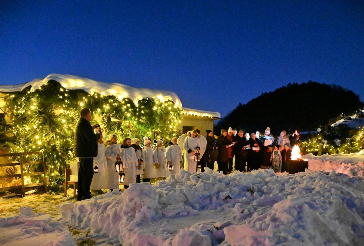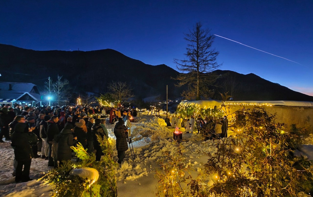 U skromnoj štalici, uz oganj čiji je plamen u noći rasipao iskrice poput pravoga betlehemskog svjetla, oživjela je najljepša biblijska priča o rođenju malenoga Isusa. Djetešce na slamici, sveta obitelj, pastiri, zbor anđela te žive životinje, ovce, koze i magarac, vjerno su dočarali prizor rođenja Mladoga kralja.