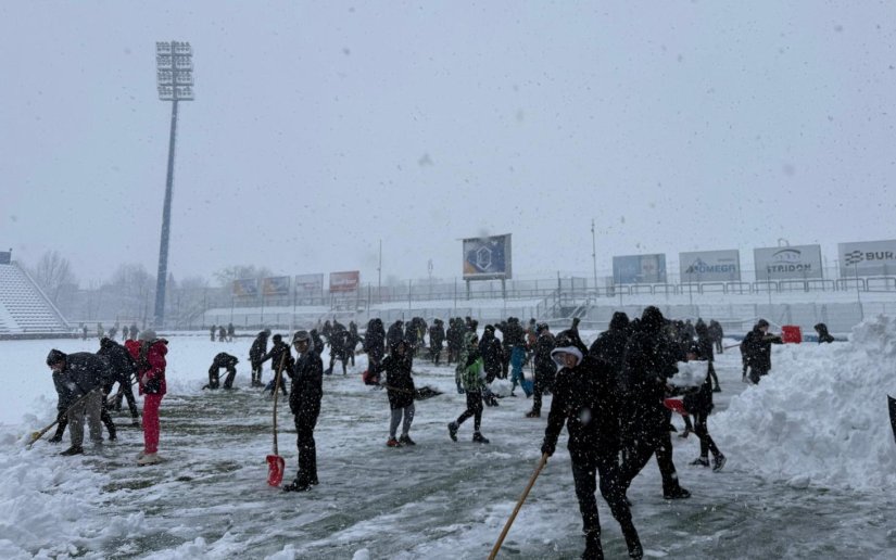 Snijeg im ne može ništa - počelo čišćenje travnjaka uoči nedjeljnog susreta Varaždina i Dinama