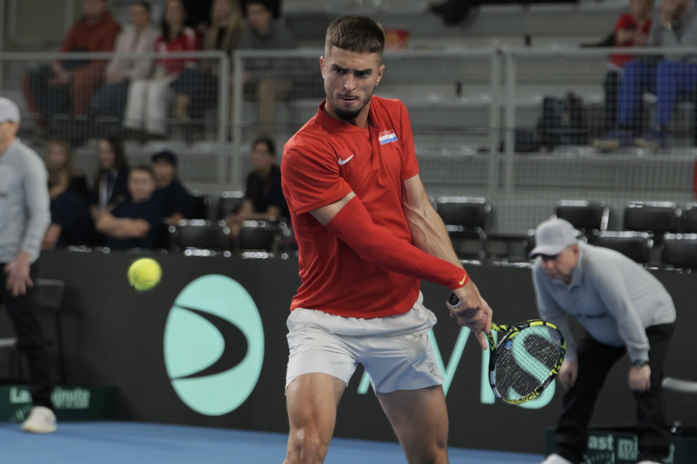 - Ovo je bio moj prvi 'živi' meč za reprezentaciju, bilo mi je veliko zadovoljstvo, iskustvo i čast što sam igrao. Osjećaj naravno nije isti kao na treninzima ili u meču u kojem je rezultat nebitan. Dao sam sve od sebe, iako nisam odigrao na najvišem nivou. Prvi set sam zeznuo na svom servis gemu, a u drugom sam imao više šansi nego suparnik na protivničkom servisu. Kod mog vodstva 5:4, 15-30 on je odigrao dobra poen i tu se momentum promijenio. Nadam se da će ekipa donijeti više sreće nego ja - rekao je Matej nakon meča protiv 119. igrača svijeta.