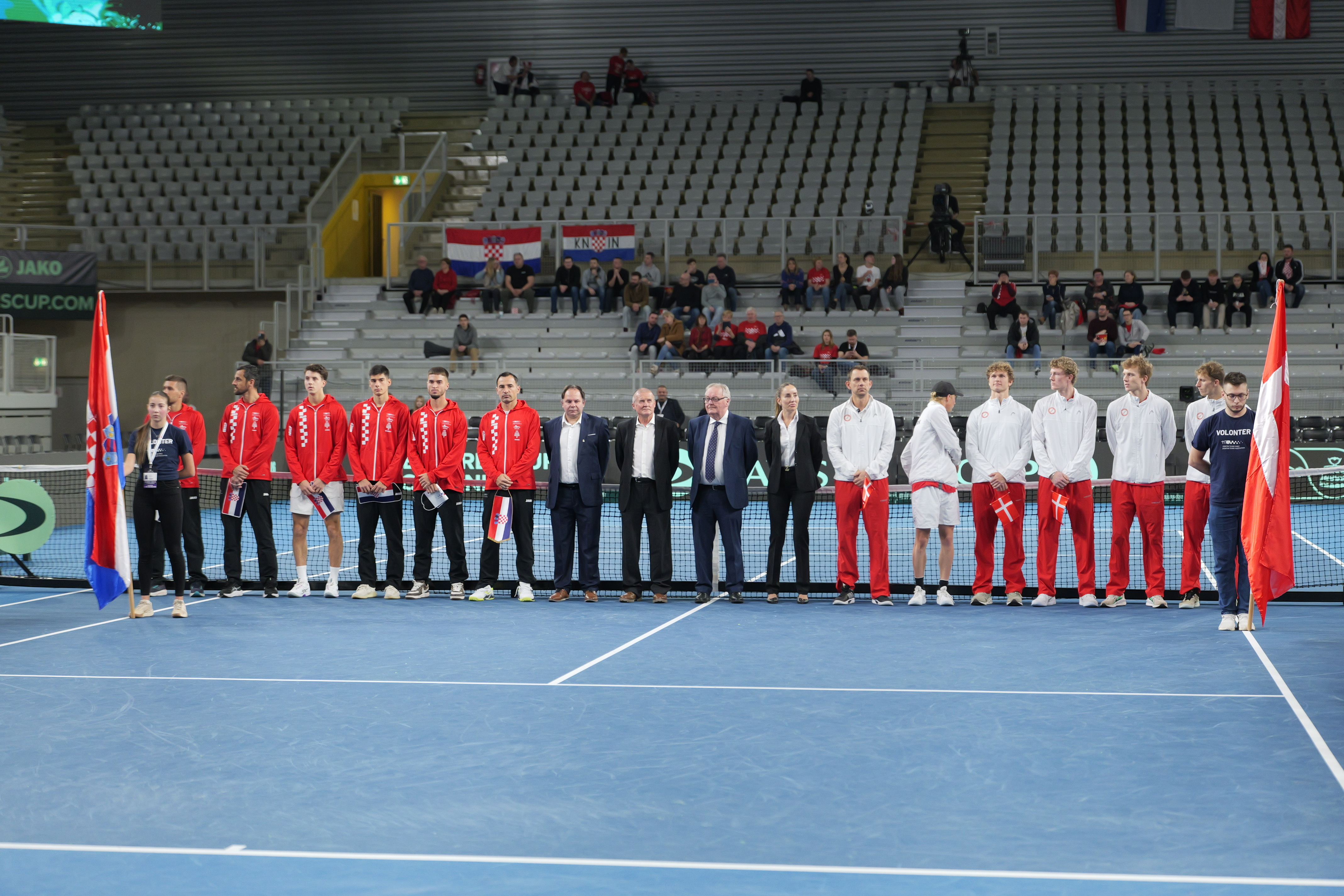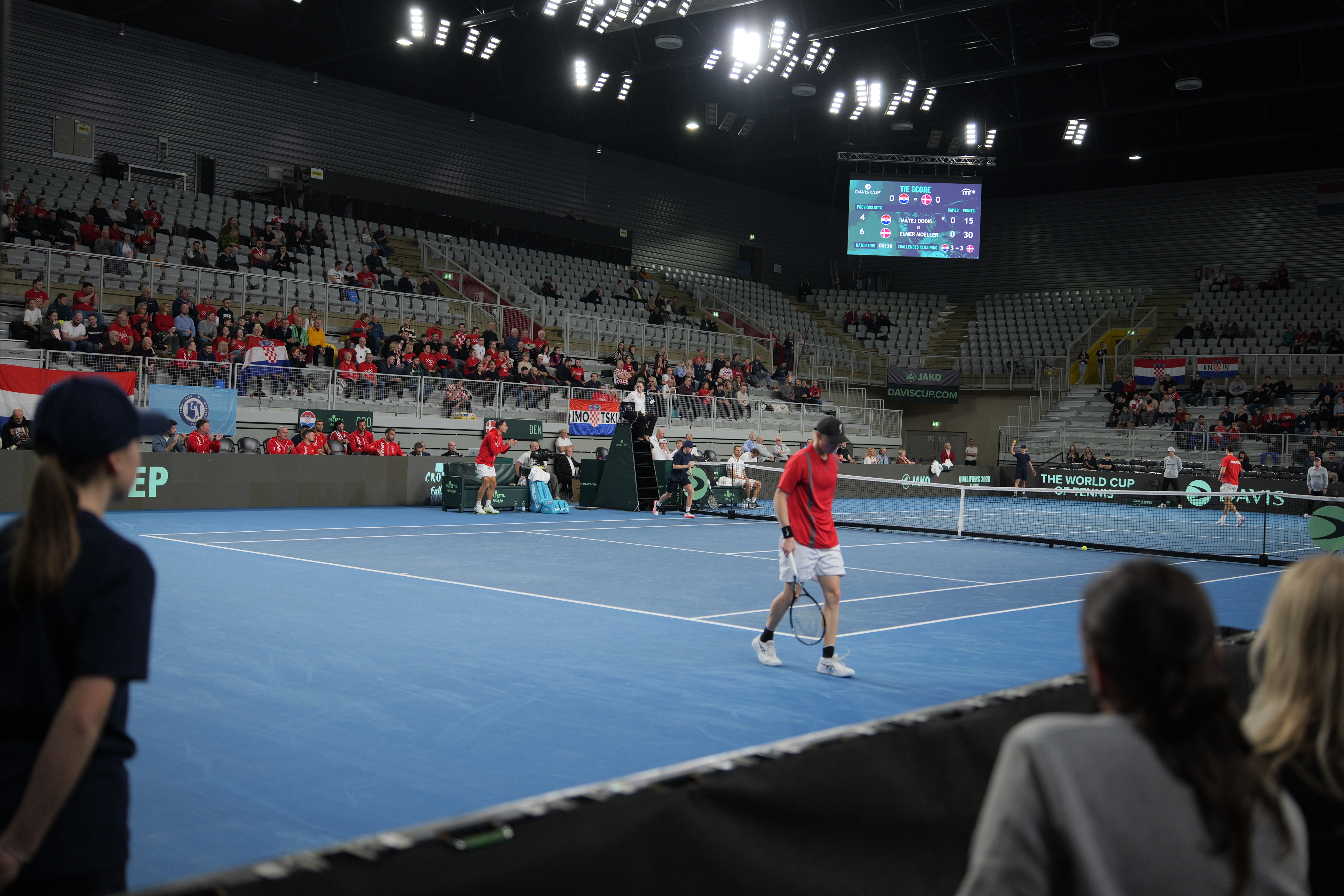 Danas je nakon dva meča, situacija između Hrvatske i Danske izjednačena 1:1. Nakon prvog meča u Areni Varaždin, Danska je povela1:0, s obzirom da je Elmer Møller sa 6:4, 7:6 (3) slavio protiv Mateja Dodiga, no Dino Prižmić je protiv Augusta Holmgrena slavio u tri seta 5:7, 6:0 i 6:2.