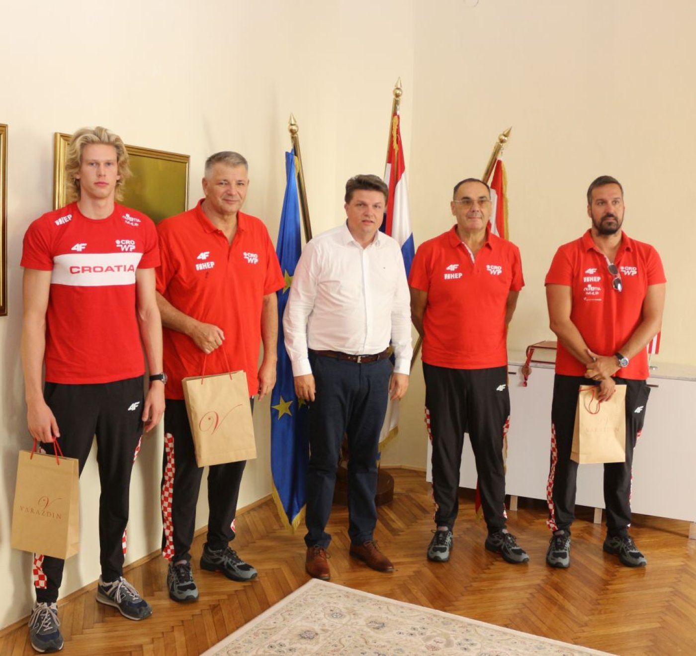 Prijemu su nazočili izbornik U19 vaterpolo reprezentacije Zoran Bajić, kapetan Ivan Mauro Čubranić, koordinator reprezentacije Emil Nikolić, pomoćni trener Igor Računica te voditelj sportskih aktivnosti Gradskih bazena Varaždin Velimir Mudri.