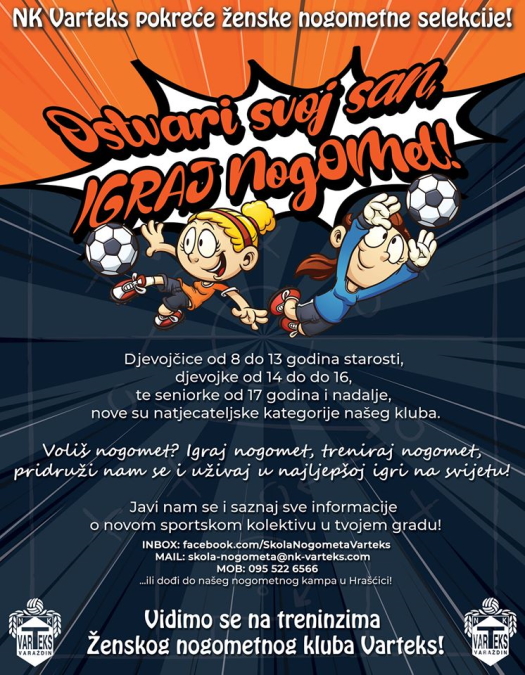 Pokreće se ženska nogometna selekcija, a svoj poziv uputili su svim zainteresiranim djevojkama od 8 godina starosti pa nadalje. Pod naslovom 'Ostvari svoj san, IGRAJ nogomet!' pozivaju djevojčice od 8 do 13 godina, djevojke od 14 do 16 te seniorke od 17 godina nadalje da dođu trenirati, igrati i uživati u nogometu.